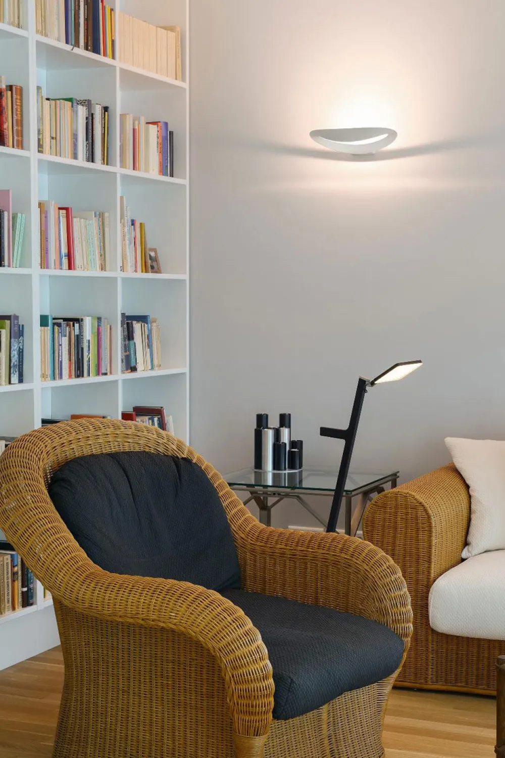 Applique dessinée par Eric Solé. Mesmeri présente beaucoup d’avantages: élégante et sobre, elle éclaire beaucoup et est à un prix abordable. Pour l’accompagner, la suspension Pirce semble tout à fait appropriée.