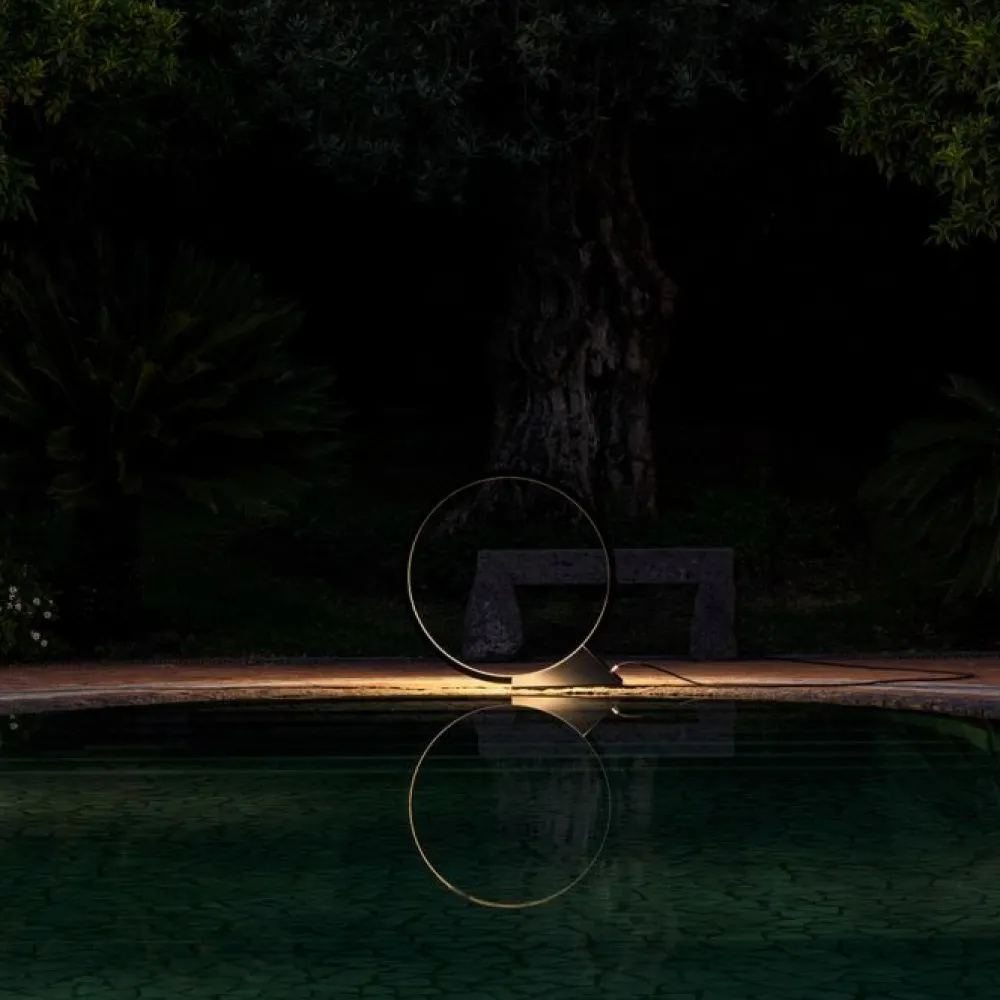 La magnifique lampe de sol extérieure O LED a été conçue par Elemental pour la société italienne Artemide. Ce luminaire est spécialement conçu pour une utilisation en extérieur et l’anneau en forme de O est composé de silicone et d’aluminium. L’aluminium utilisé pour fabriquer ce luminaire a un revêtement d’oxyde qui le protège des intempéries. Elle est classée IP67. Le silicone lui fournit des joints étanches qui protègent le système d’éclairage LED de l’humidité. Lorsqu’elle n’est pas allumée, la lampe se fond dans l’arrière-plan en raison de sa conception.