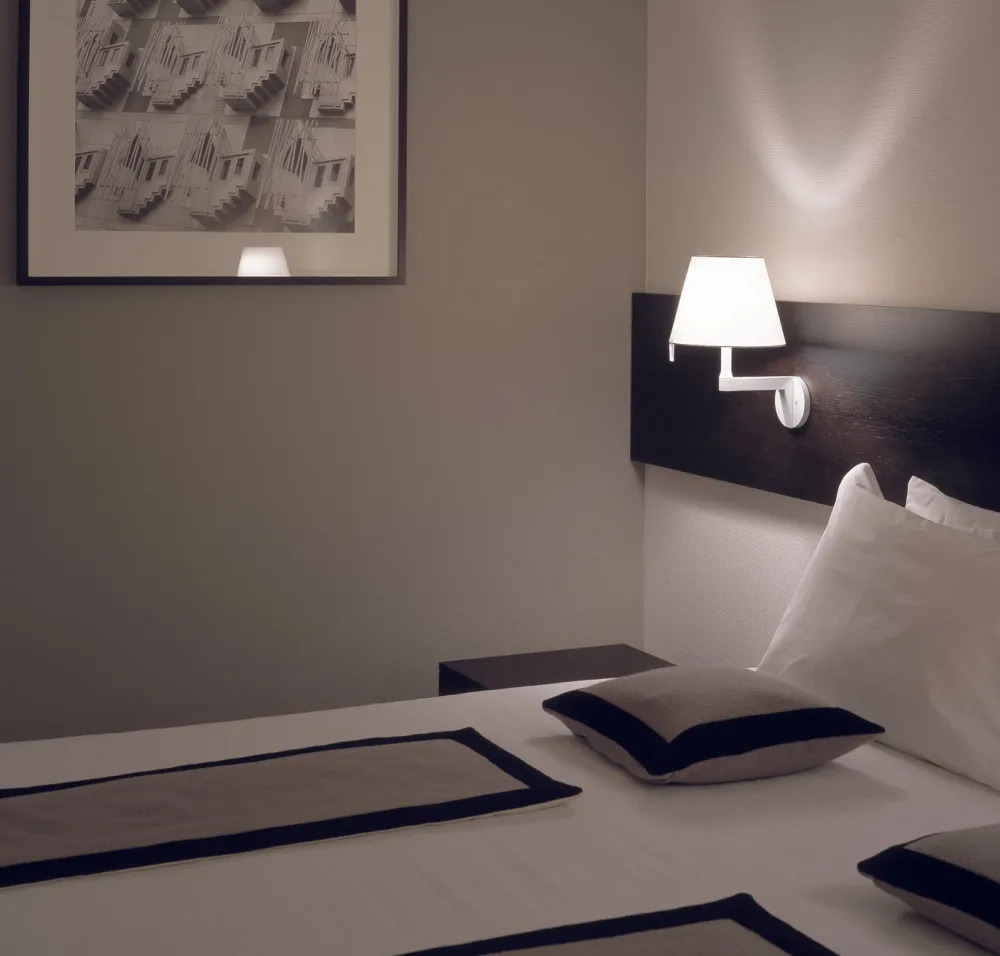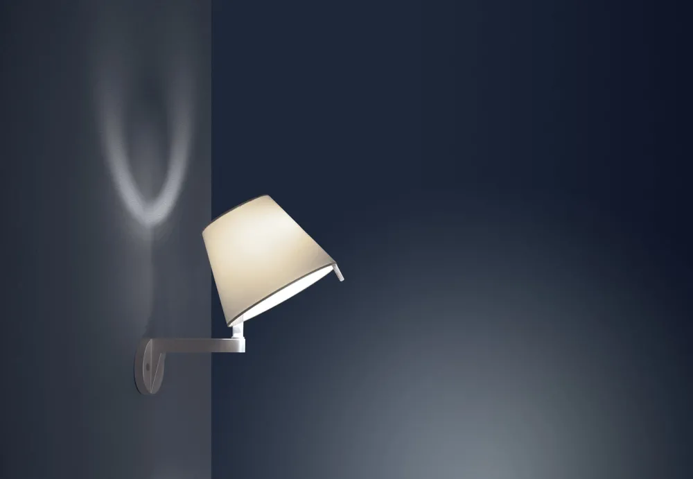 Une version applique de la lampe Melampo d’Artemide qui vous surprendra par son ingéniosité et son raffinement, deux atouts qui caractérisent parfaitement cette collection. Très fonctionnelle elle possède un abat-jour orientable de façon verticale ou horizontale, qui permet d’orienter le flux lumineux très aisément et de varier la diffusion de la lumière. Une petit tige placée au dessus de l’abat-jour permet de le diriger plus facilement. Le diffuseur en polycarbonate est recouvert de satin de soie gris. La structure est en métal verni gris aluminium.