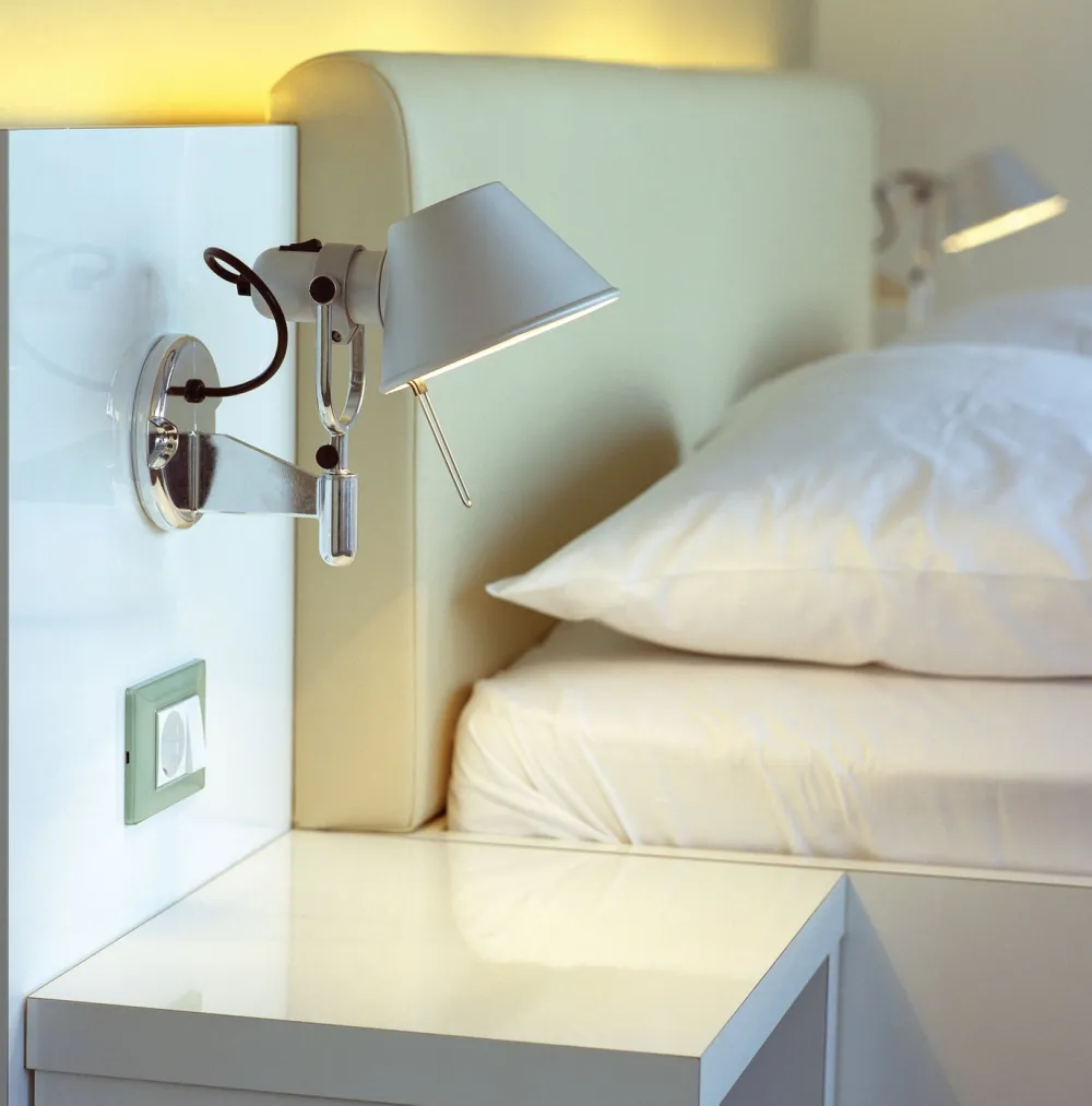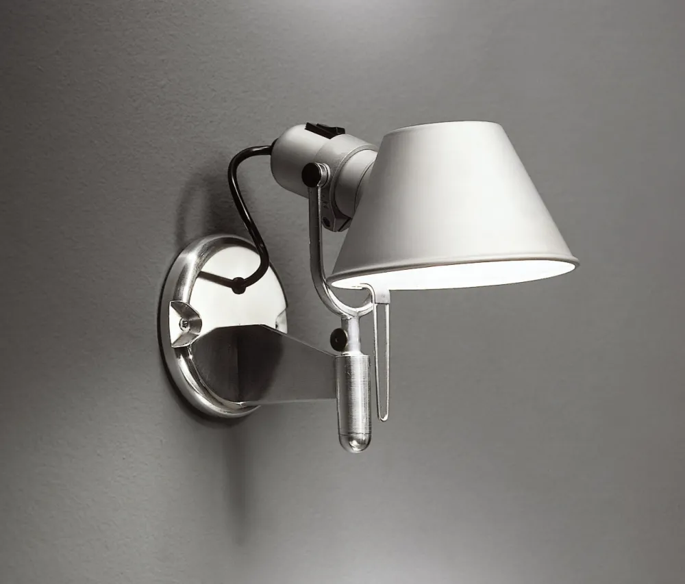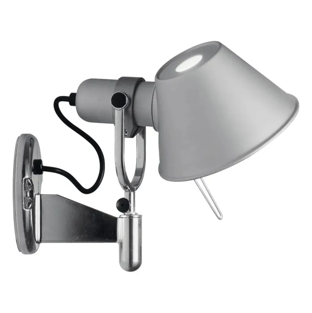 Cette applique se compose d’une structure en aluminium poli et d’un diffuseur, orientable dans toutes les directions, en aluminium anodisé opaque, de couleur aluminium. Elle se décline en deux tailles. La Tolomeo faretto émet une lumière directe orientable.