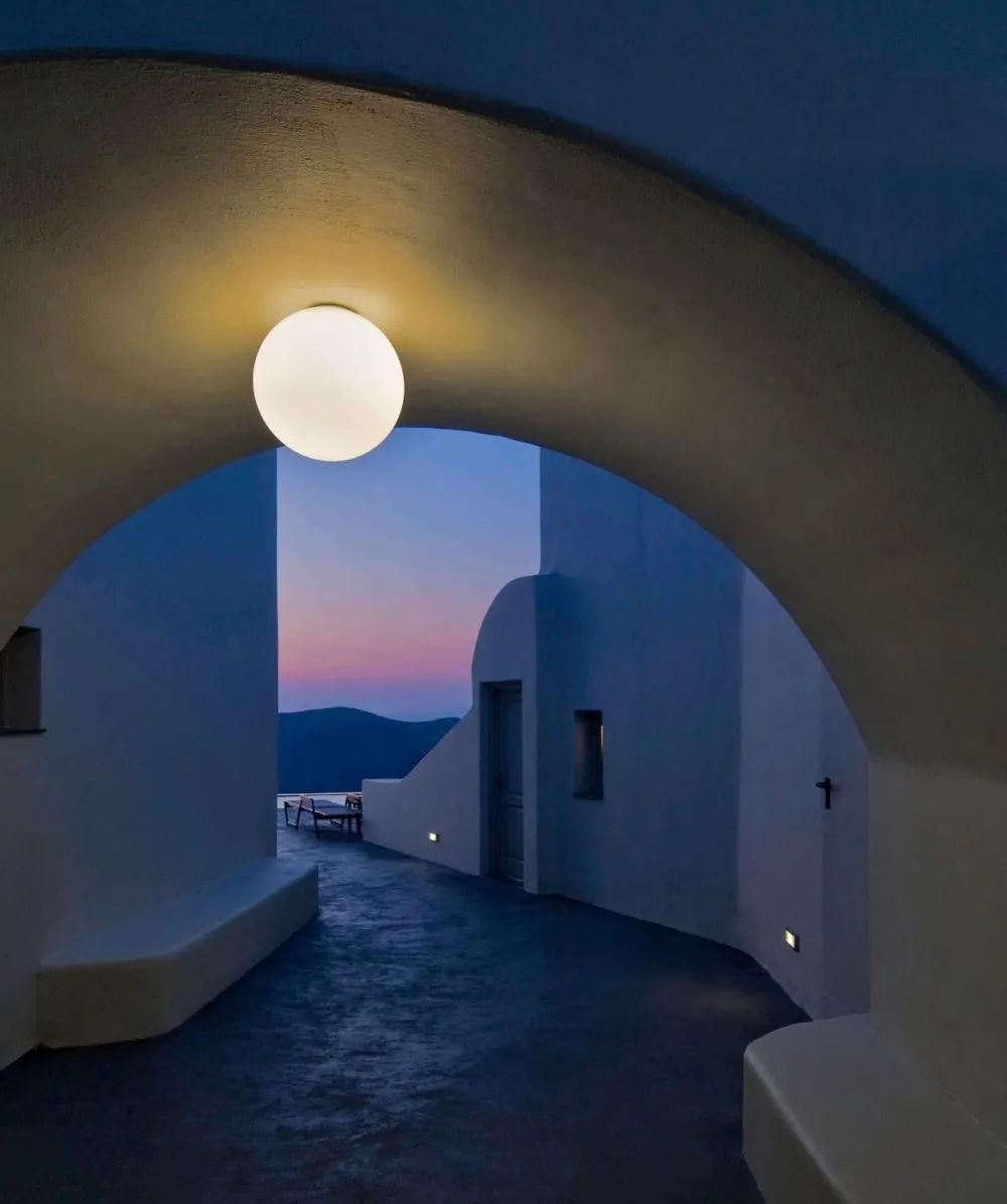Cette applique au design simple et élégant se compose d’une base en résine thermoplastique et d’un diffuseur en verre soufflé traité à l’acide. Elle émet une lumière diffuse.