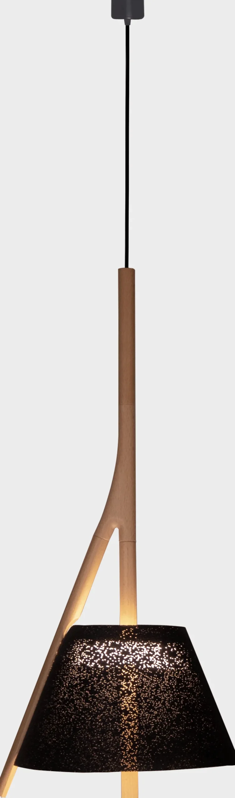 Cambo est la nouvelle suspension design issue de la collaboration avec le studio cenlitrosmetrocadrado. Le mot Cambo (d’origine galicienne) fait référence à une pièce en bois avec un crochet à une extrémité, un élément artisanal présent dans la tradition galicienne. Avec la nature et notre environnement comme source d’inspiration, cenlitrosmetrocadrado a conçu le système Cambo basé sur la croissance naturelle des plantes et les branches des arbres. La vision de l’environnement de Ricardo Tubío et Xabier Rilo a donné naissance à un système modulaire qui permet de configurer différents designs avec les mêmes éléments. Cambo est composé d’une structure en bois de hêtre avec un vernis à base d’eau qui permet de montrer le matériau dans sa forme la plus naturelle. Cette suspension existe en blanc et en noir mais vous pouvez également personnaliser la couleur du luminaire sur demande à l’adresse [email protected].
