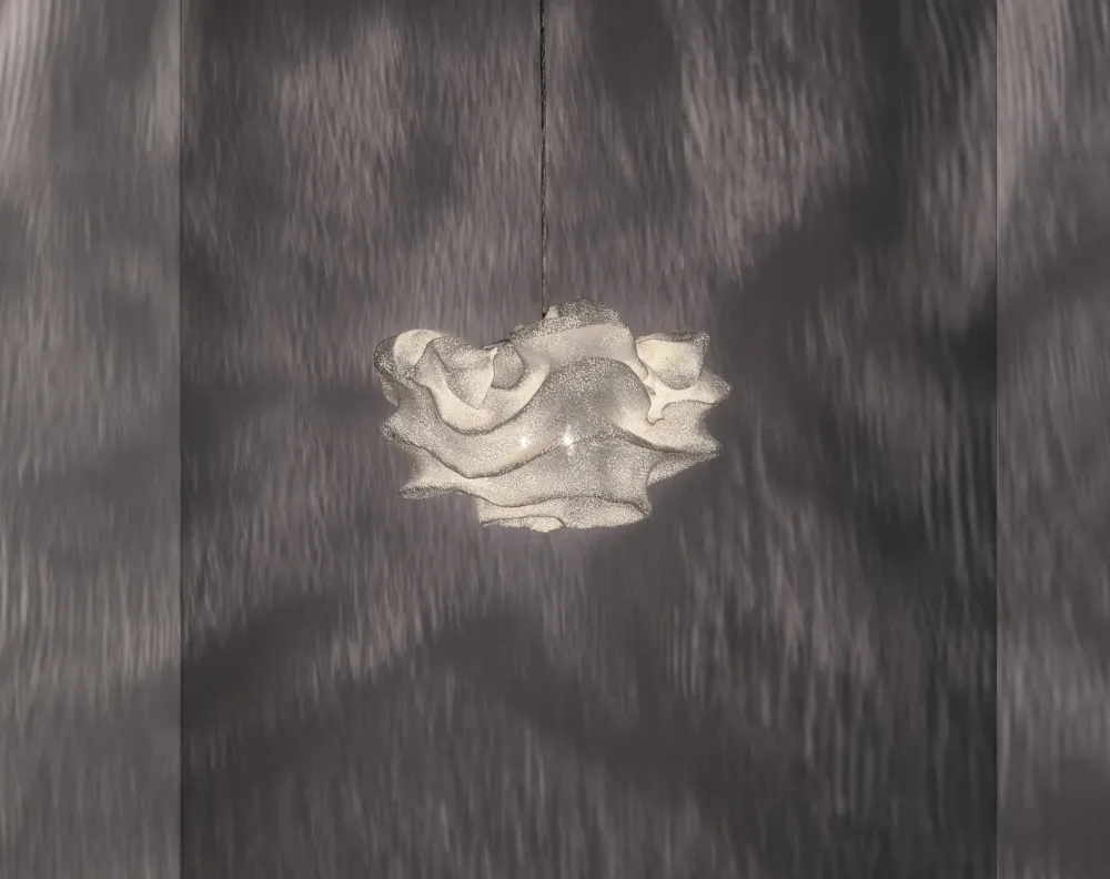Un nuage ou une fleur? Laissez parler votre imagination. « Une forme dynamique qui semble être en constante évolution. Un nuage de courbes suggestives, des volumes impossibles qui entrelacent le futur et le présent d’une manière subtile. Une forme décomplexée faite de matériaux de pointe. » Fabriquée en acier inoxydable peint, la suspension Nevo diffuse une lumière douce et tamisée, très agréable pour une chambre, une entrée ou un couloir. Quelques ouvertures sur le dessus permettent une diffusion de la lumière en indirect. Existe en blanc, beige, gris ou taupe : nous consulter.