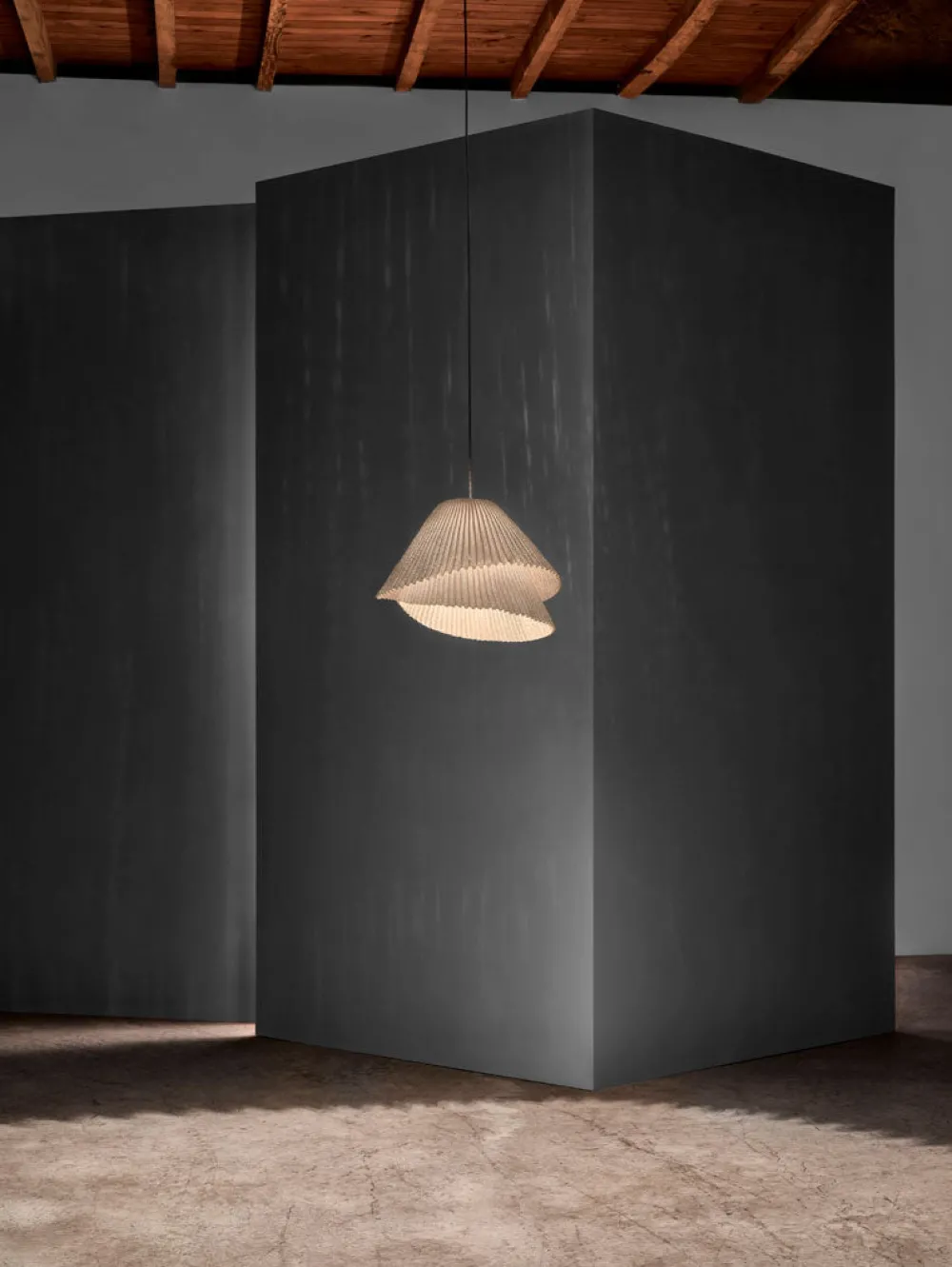 Tempo est une collection de lampes suspendues en maille d’acier inoxydable peint. Ce matériau, confectionné en plis fins, forme deux couches superposées qui créent deux lampes différentes pleines de dynamisme. Andante et Vivace, deux formes de vivacité nées d’une seule. La représentation de deux instants générés par le même mouvement à un tempo différent. Cette suspension existe en blanc, beige, gris ou taupe.