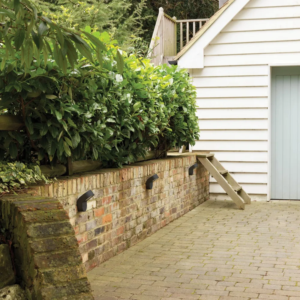 Soprano est une applique murale pour l’extérieur à la forme organique. Son diffuseur circulaire est en verre blanc et sa structure est peinte en noir. Norme IP44.