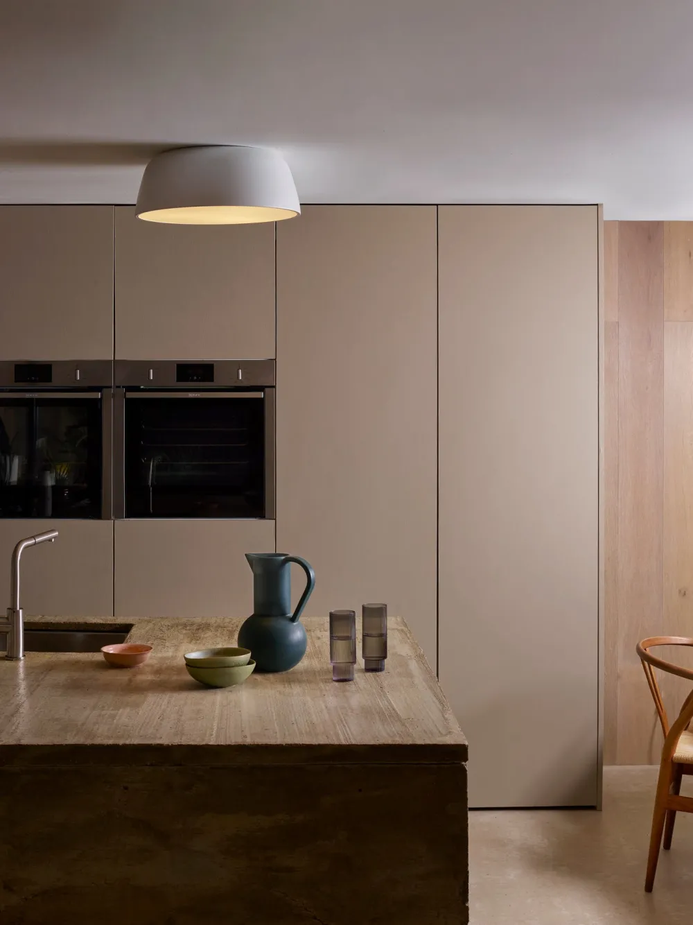 Cette forme de cloche incurvée avec audace a été pensée pour donner l’impression de flotter. Le plafonnier Taiko est suffisamment polyvalent pour être utilisé dans un séjour, une chambre ou dans un couloir. Élaboré en acier repoussé, l’abat-jour se décline en noir mat ou blanc, tandis que le diffuseur blanc en polycarbonate fournit une lumière vive mais non éblouissante.