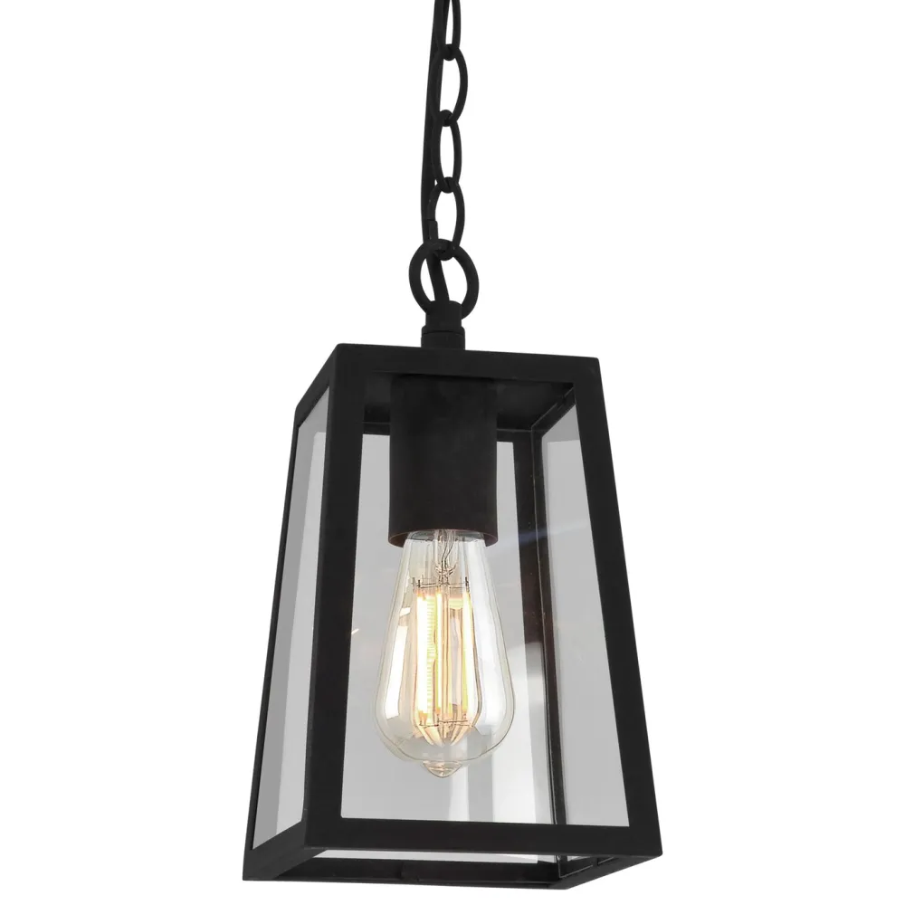 Suspension d’extérieur à placer au dessus de votre entrée ou de votre salon de jardin. Disponible en trois finitions avec verre transparent. Norme IP23. Classe 1.