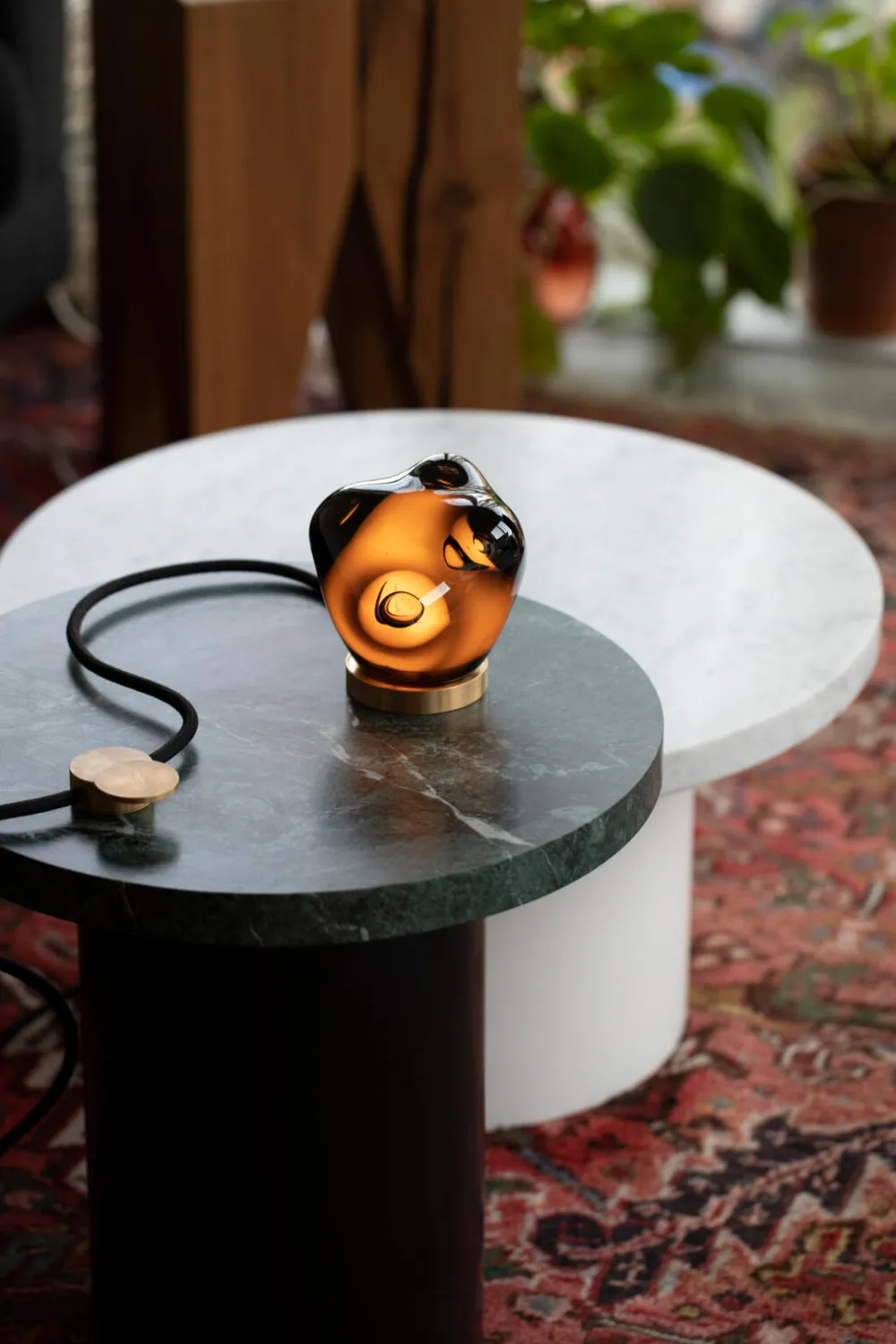 La série 57 de Bocci propose désormais une lampe à poser, à la forme irrégulière, posée sur un socle en laiton. Un variateur placé le long du cordon noir permet de faire varier la lumière.
