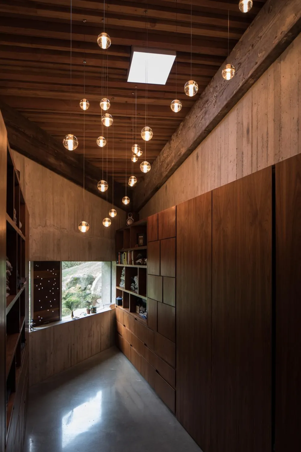 La série 14 se décline en cascades, à adapter selon votre espace et votre hauteur sous plafond. Le verre est coulé dans un moule hémisphérique. Lorsque le verre se refroidit, une forme de ménisque se forme sur la face ouverte de la pièce. Deux de ces pièces sont jointes pour former une sphère articulée, les deux vides au milieu donnant une certaine qualité optique. Un vide cylindrique traverse les deux hémisphères et abrite une source de lumière.