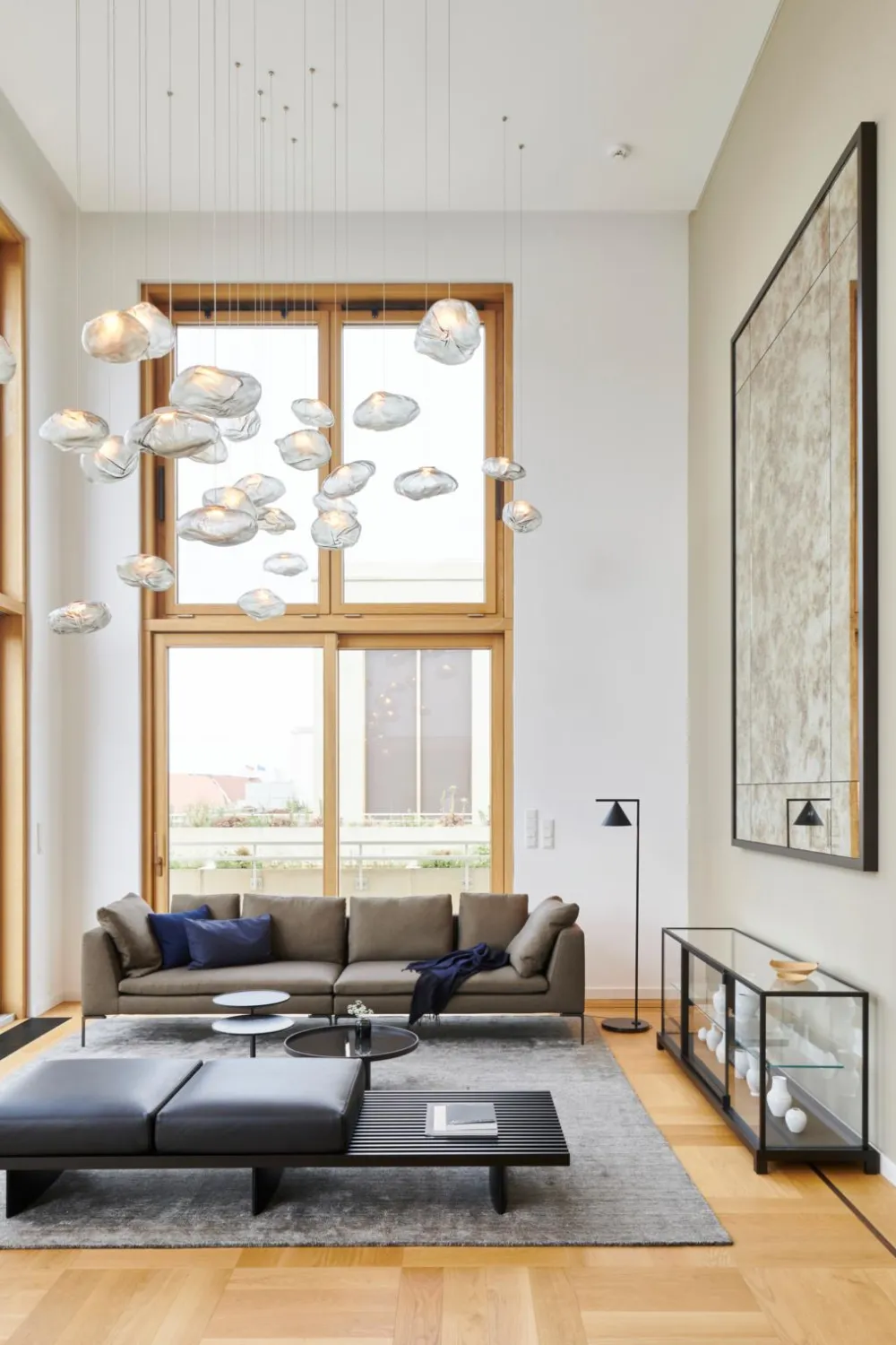 73 résulte du soufflage de verre liquide dans un récipient en tissu céramique plié et très résistant à la chaleur. La forme résultante a une expression formelle et texturale associée intuitivement au tissu, qui devient permanent et rigide en refroidissant. Une LED plate est positionnée pour remplir le volume, offrant une lumière diffuse, accentuant la perception volumétrique de la pièce.