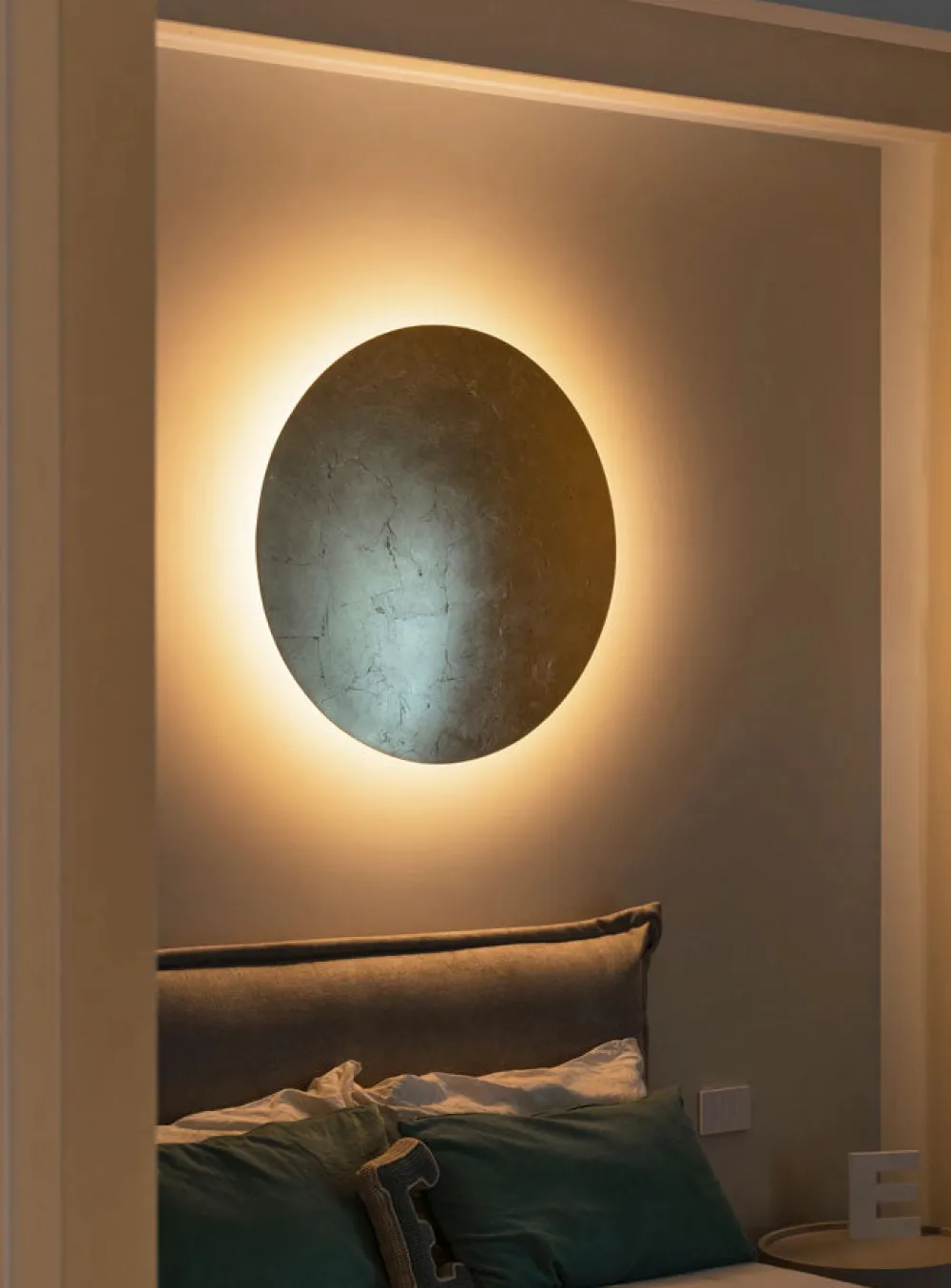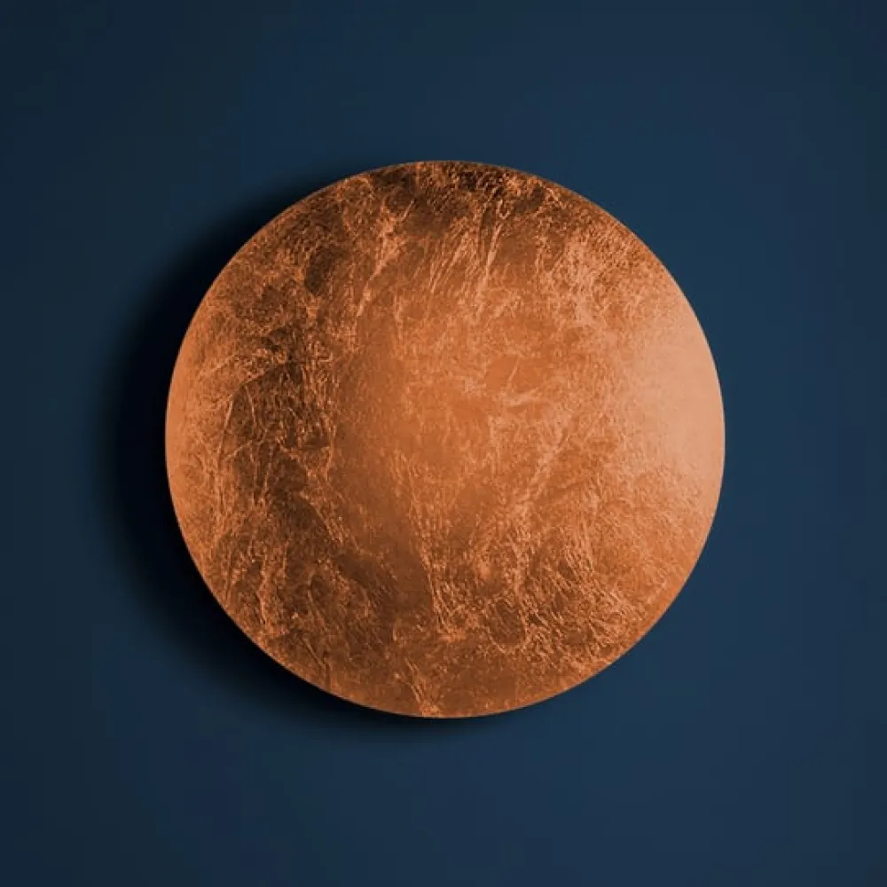Luci d’Oro naît comme une réflexion sur la couleur de la lumière : la lumière dorée du soleil, du feu, des lumières chaudes, où le concept de réfraction commence à prendre forme dans l’esprit d’Enzo Catellani, qui l’appliquera souvent à d’autres créations. Avec l’applique Francesca, Enzo Catellani choisit la pureté de la forme comme élément principal, et prend le parti d’éclairer de façon indirecte, vers le mur, créant ainsi un halo de lumière tout autour du cercle.
