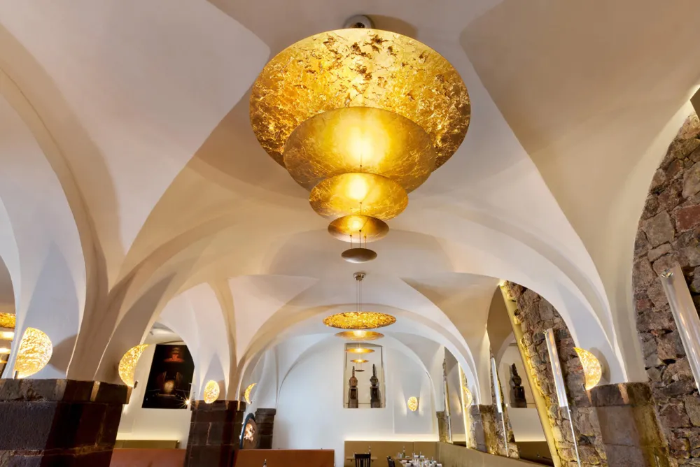 Accueillante et majestueuse, la Macchina Della Luce éclaire de façon indirecte, sublimant chaque plateau supérieur. La lumière est présente mais jamais éblouissante. L’espacement entre les plateaux se définit au moment de l’installation (voirnotice de montage ci-dessous). Il est possible de commander des tiges de hauteur 300cm sur demande (nous consulter).