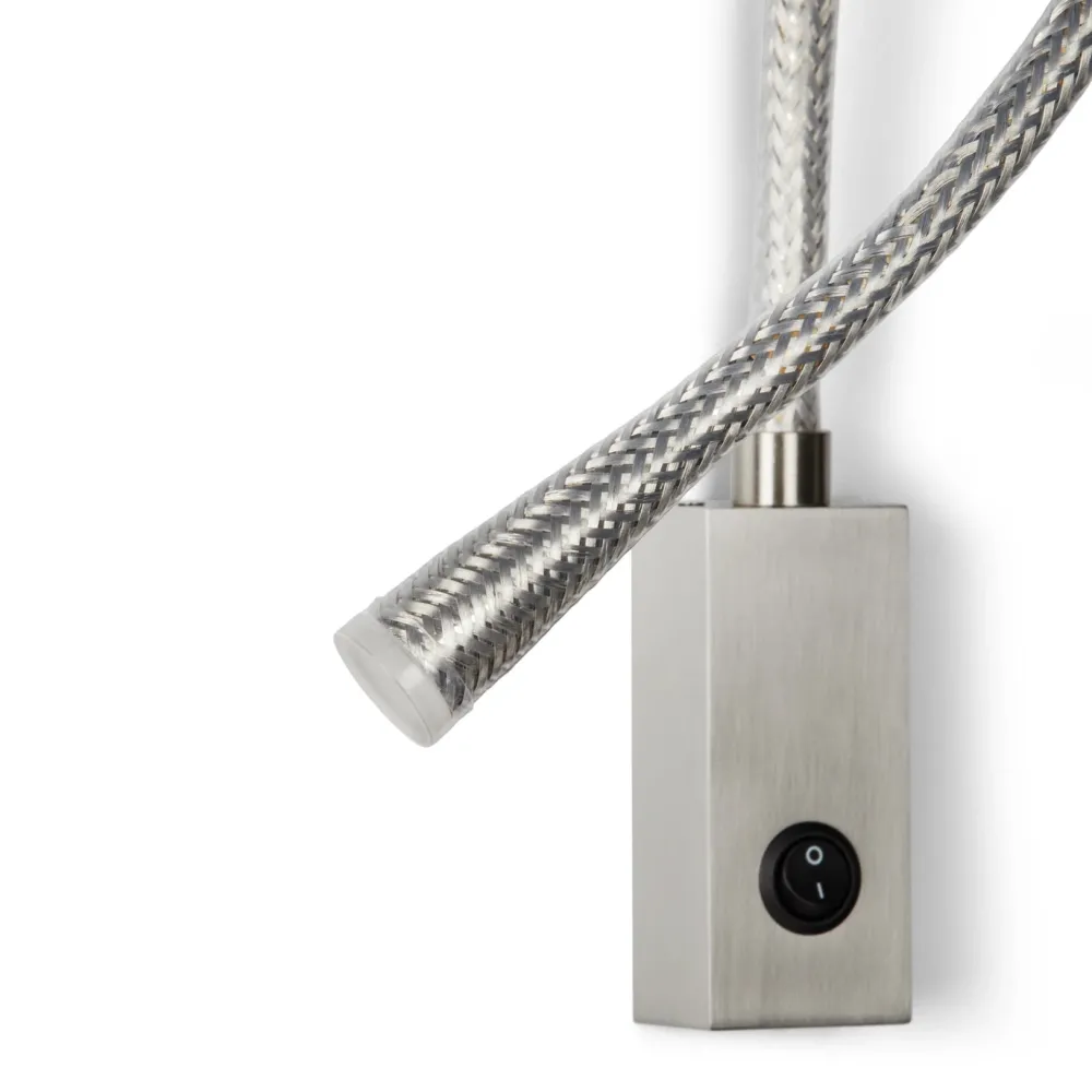 Modèle iconique de Contardi, Flexiled est disponible dans les versions « ACIER » et « CUIR »: dans le premier, le bras flexible est recouvert d’une maille en acier tressé puis enveloppé dans une gaine transparente, dans le second il est plutôt inséré dans une housse en cuir avec double couture sur les côtés. Flexiled se caractérise par des normes de qualité élevées, à commencer par l’utilisation d’un bras en laiton flexible (diam. 12 mm) qui garantit la solidité et l’absence de grincement même après une utilisation très prolongée; un haut niveau d’ingénierie et une dissipation des LED garantissent que la température sur la tête reste dans les limites correctes même après 24 heures d’utilisation ininterrompue. Modèle facilement « personnalisable » en coloris cuir, longueur de bras et forme et finition de la base murale. Il est possible de commander une version avec câble pour un branchement au sol (si vous n’avez pas d’arrivée électrique au mur). N’hésitez pas à nous consulter: [email protected]