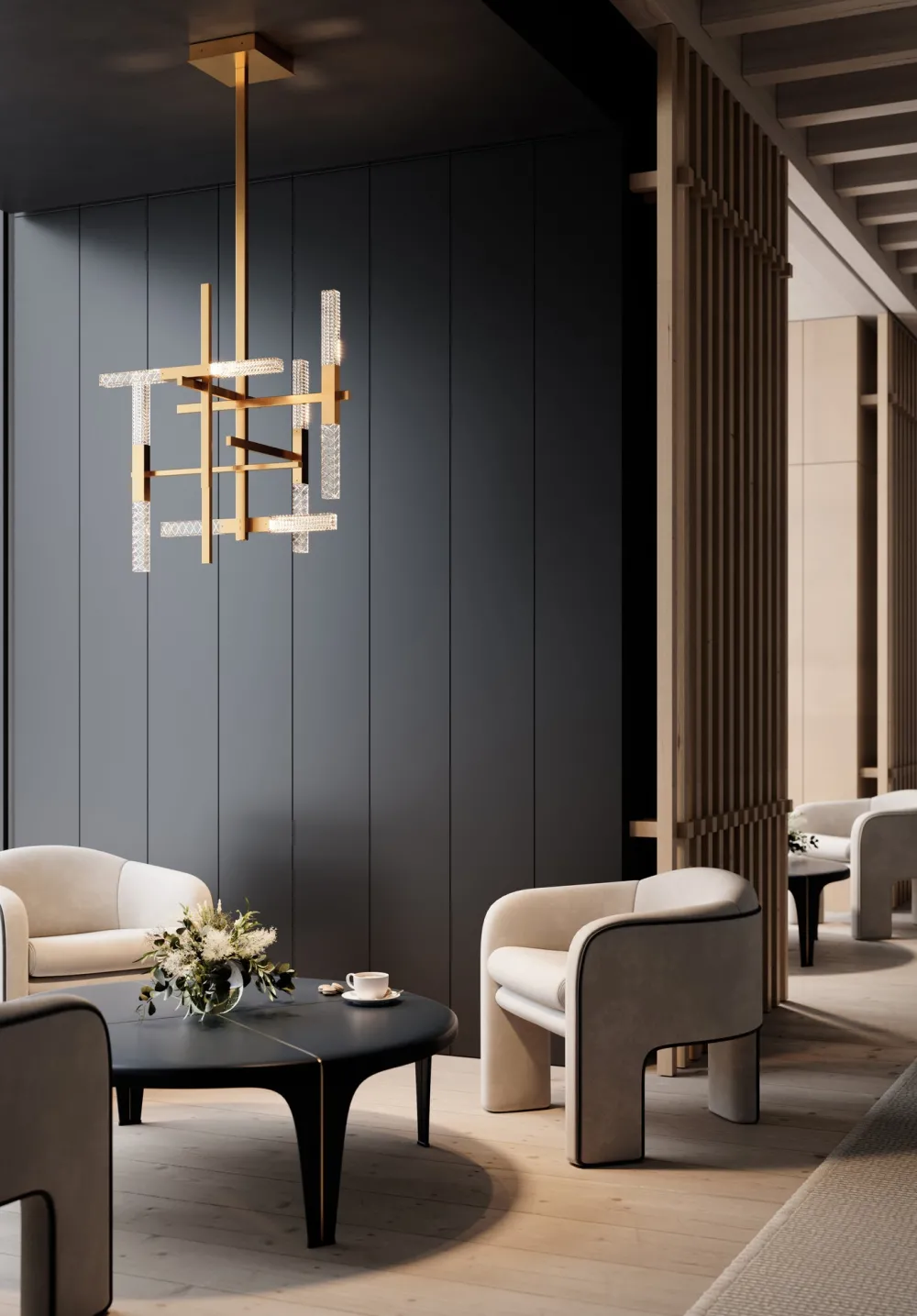Une collection de lampes « bijoux » associant des tubes rectangulaires en laiton et des cubes inclinés en cristal taillé, déclinée en deux constructions. Bien qu’apparemment aléatoires (d’où le nom « Mikado »), ils suivent en réalité un schéma précis et équilibré. Une source de lumière LED insérée à l’intérieur des tubes pour souligner la préciosité du cristal fait de Mikado un produit décoratif performant et compatible avec les systèmes domotiques. La collection se décline en plusieurs variété de luminaires : appliques, suspensions, lampes à poser et lampadaires.