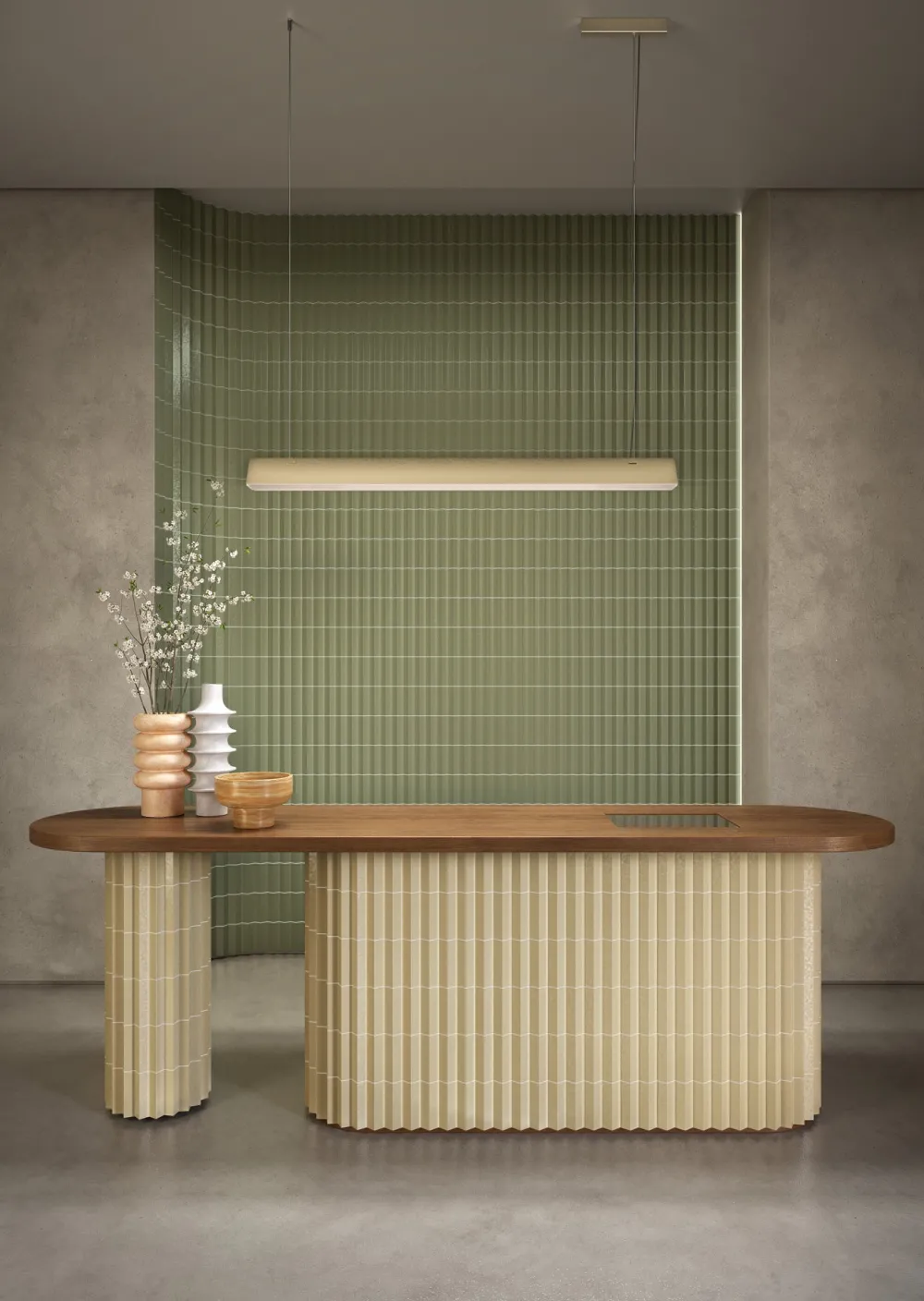 Stick so large est une suspension dont la lumière joue un rôle important, grâce au diffuseur nervuré, choisi précisément pour produire des nuances d’éclairage uniques dans différents contextes. Produit esthétiquement minimaliste, Stick so large de Contardi est techniquement fabriqué à un niveau très élevé, sans vis ni attaches, sauf à l’arrière. Studiopepe a conçu des objets de galerie d’art comme cette suspension, qui peut être utilisée dans des endroits plus simples comme les couloirs, les commerces, les résidences, les bureaux et les espaces de travail. Des éléments simple et architecturaux se composent au sein d’un ensemble d’éclairage de grand caractère. Le bâton éclaire uniformément son environnement lorsqu’il est vu de face, cependant, selon l’angle de vue, il crée des effets de lumière variés. Actuellement, la gamme de produits Stick comprend plusieurs versions, à la fois murales et suspendues.
