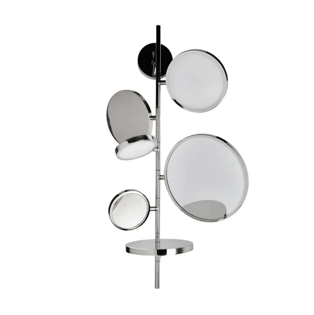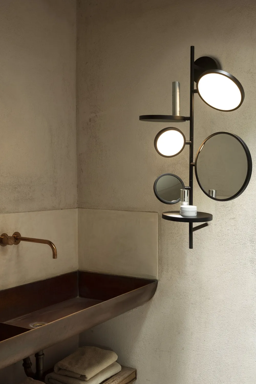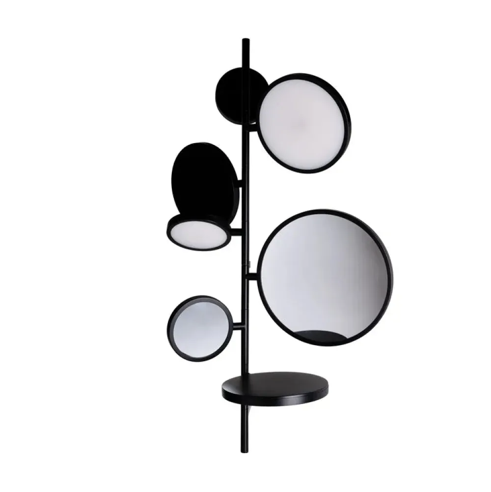 DCW Editions vous propose non pas une simple applique murale mais bel et bien l’applique lumineuse avec miroirs. Cette applique qu’elle soit doré, argenté ou noir vous propose un très joli design et une utilité sans comparaison ! Cette applique en acier est constituée d’une multitude de jolis miroirs ronds aux dimensions variées avec deux lampes. Au total, deux miroirs dont un grossissant et deux lampes. Enfin une routine beauté éclairée !