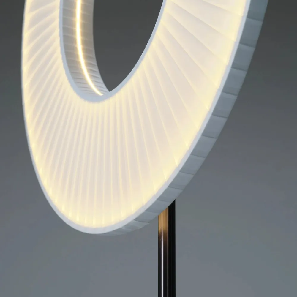 Le luminaire Iris Totem se distingue par une diffusion unique de la lumière et par une forme moderne et épurée. Imaginé comme un écho au soleil, ce lampadaire permet d’éclairer tout en douceur créant ainsi une atmosphère chaleureuse et apaisante quel que soit l’espace, du salon à la salle à manger. Sa base faite en marbre blanc et son disque en ruban blanc ajoutent une touche d’élégance et de subtilité. Allumé ou éteint, Iris Totem ajoute une touche design à tous les intérieurs.