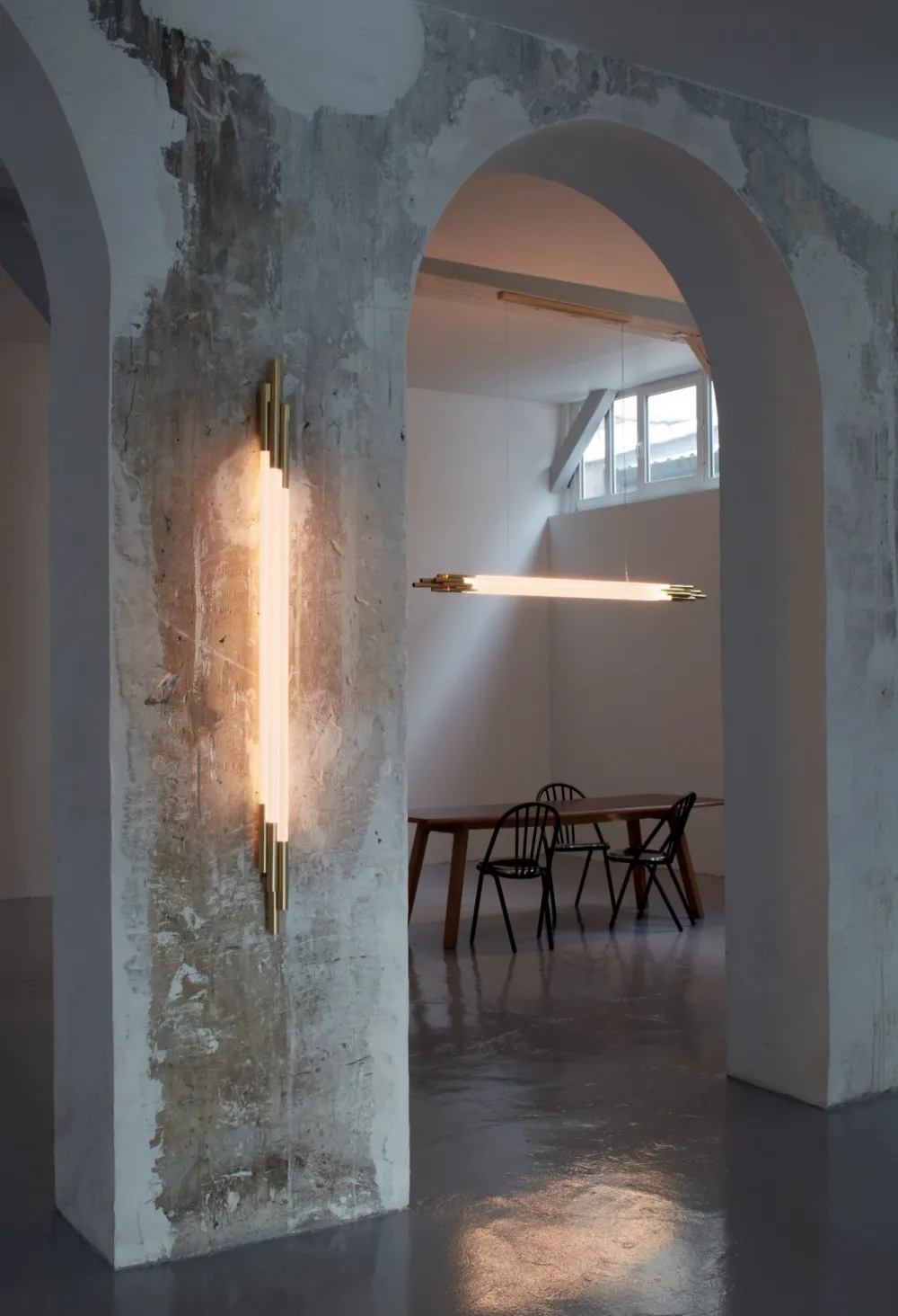 Inspiré par la science-fiction et l’astronomie, le designer allemand Sebastian Summa a créé sa lampe ORG comme une étoile filante. Cette composition déstructurée de tubes en verre et métal doré propose un mix d’élégance classique et d’originalité. Véritable caméléon à l’esthétique hybride, ORG se fond dans tous les styles de déco, passant avec aisance des espaces industriels et bruts aux univers sophistiqués. Ses grandes dimensions en font un élément architectural de premier plan. Véritable totem lumineux, la suspension ORG propose une forte valeur décorative.