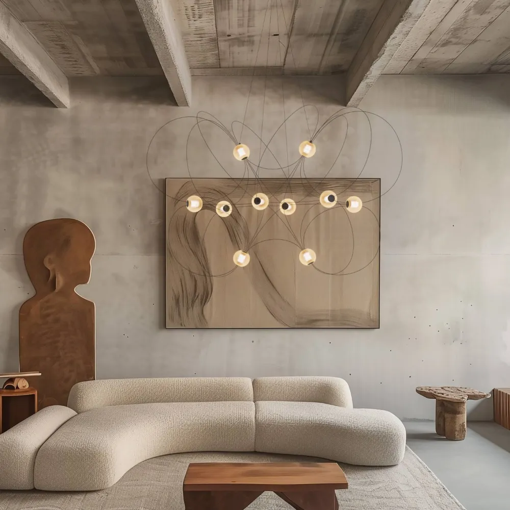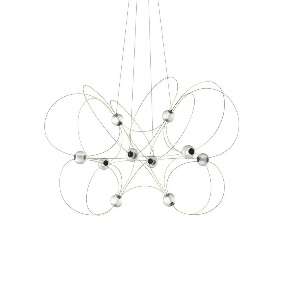 La suspension Munari 10 de DCW éditions, conçue par Lutz Pankow, est une pièce lumineuse sculpturale au design épuré et aérien. Avec ses dix sphères en acrylique suspendues par une structure en acier et aluminium, elle crée un effet visuel dynamique, rappelant des constellations ou des lignes de force invisibles. Équipée d’une technologie LED performante, elle diffuse une lumière douce et chaleureuse tout en restant économe en énergie.