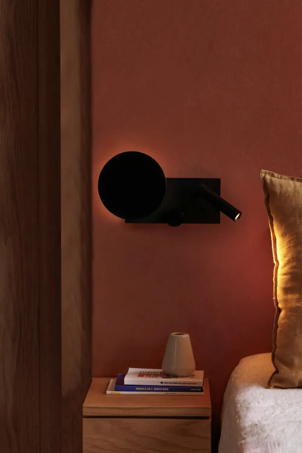 KLEE est une applique murale au design épuré, imaginée par Isaac Piñeiro. Dotée d’une finition gris texturé, elle incarne l’élégance fonctionnelle. Cette applique se distingue par sa double fonctionnalité : une liseuse orientable discrètement intégrée sur le côté droit, idéale pour la lecture, et une lumière indirecte diffusée par un anneau lumineux qui crée une ambiance douce et chaleureuse.