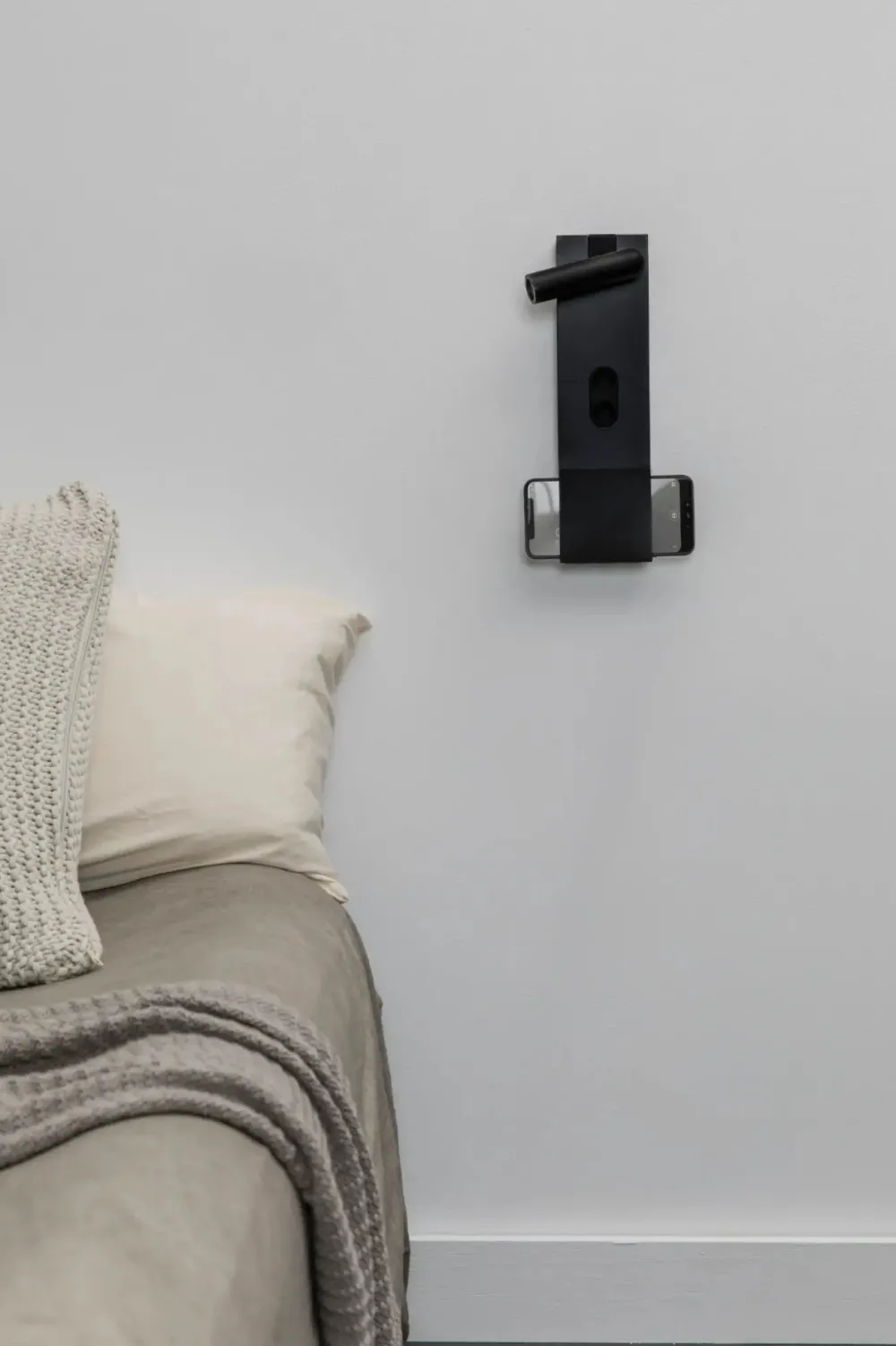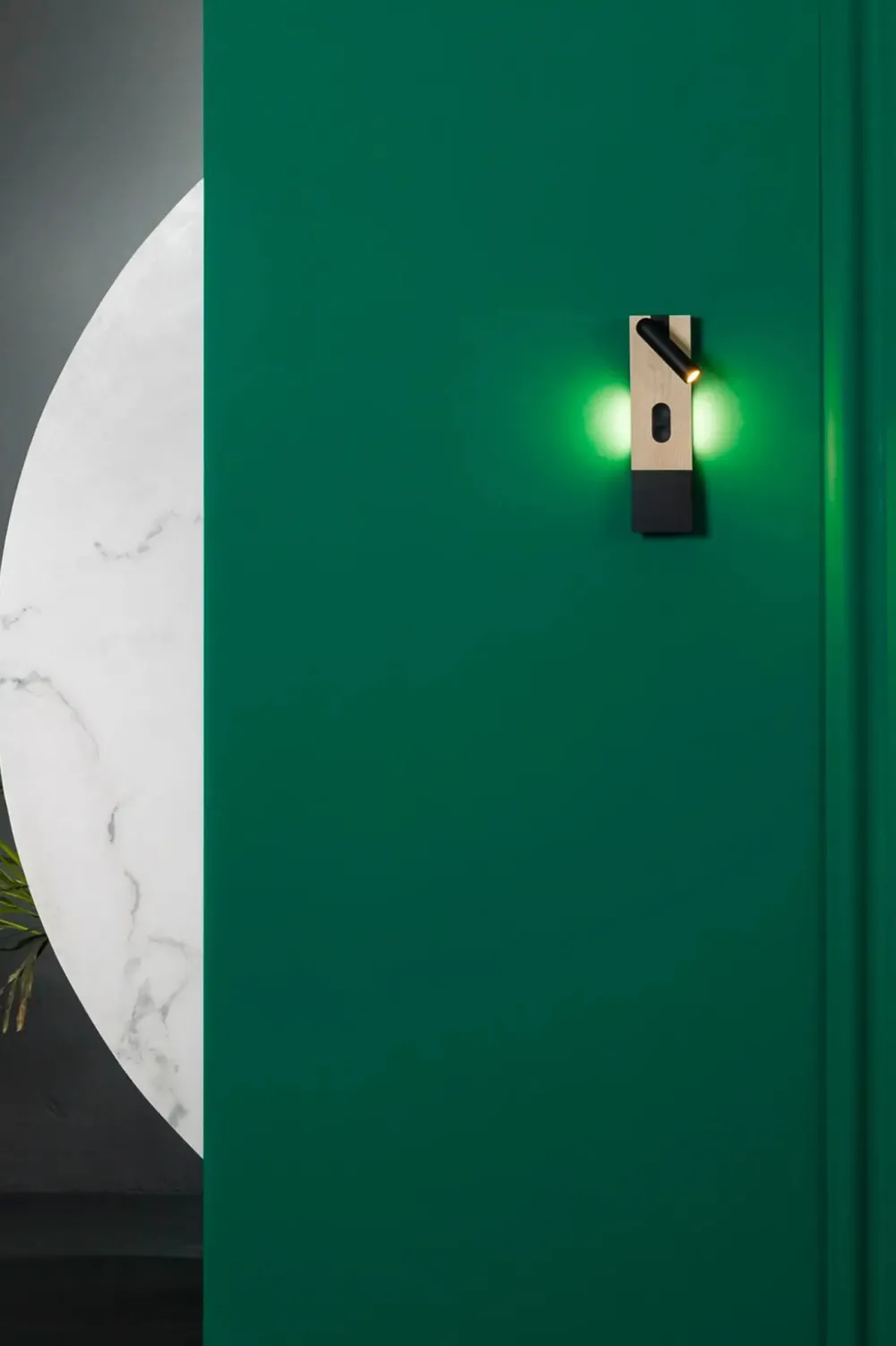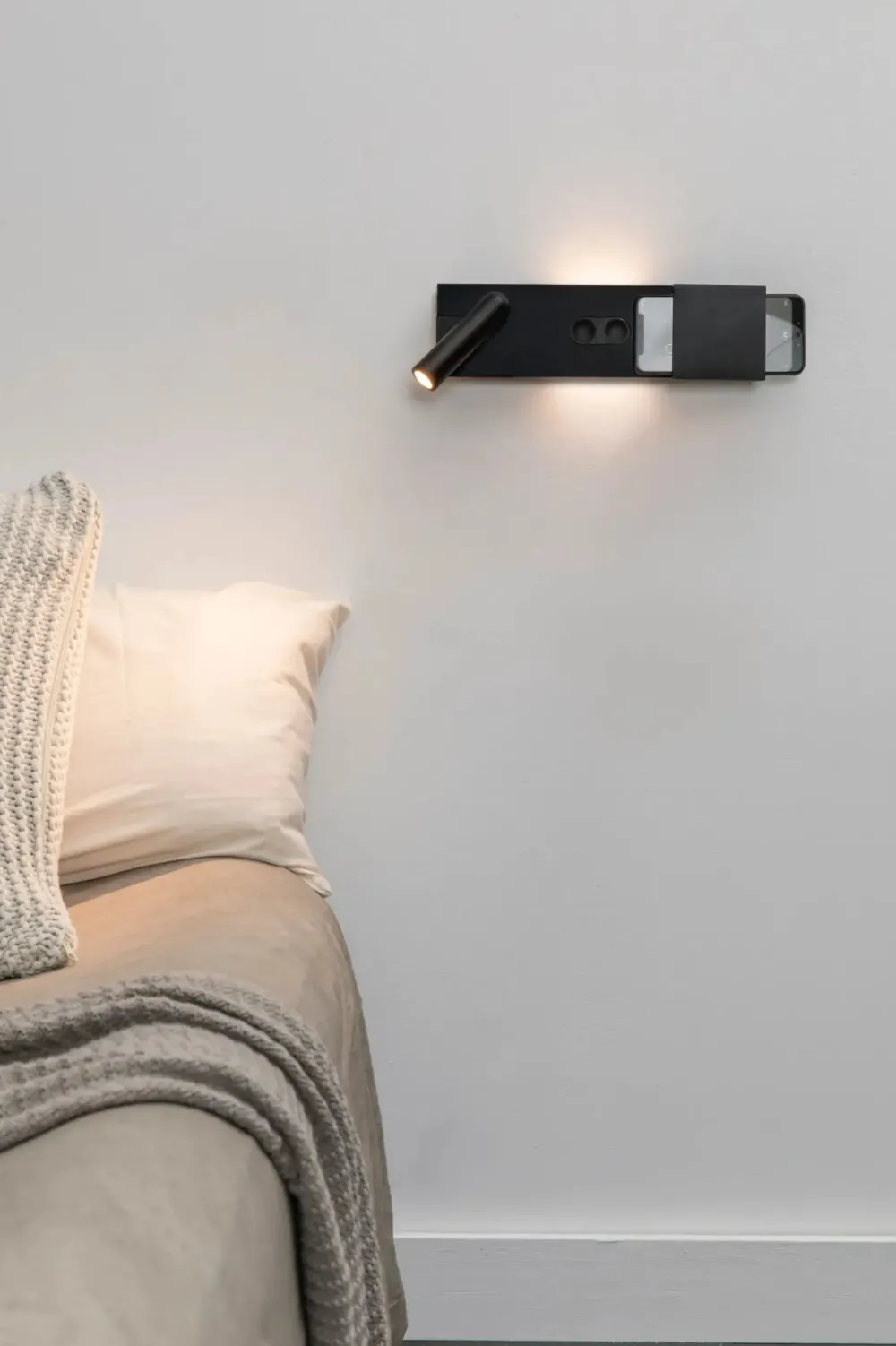 MAGOS est une applique murale en bois d’érable dessinée par Faro Lab, pensée pour les chambres à coucher modernes. Ce luminaire combine deux sources lumineuses : une lumière indirecte projetée derrière la structure, idéale pour une ambiance douce, et une liseuse pivotante pour la lecture. Grâce à son design astucieux, MAGOS offre également un espace pour poser un téléphone, avec une fonction de recharge sans fil intégrée.