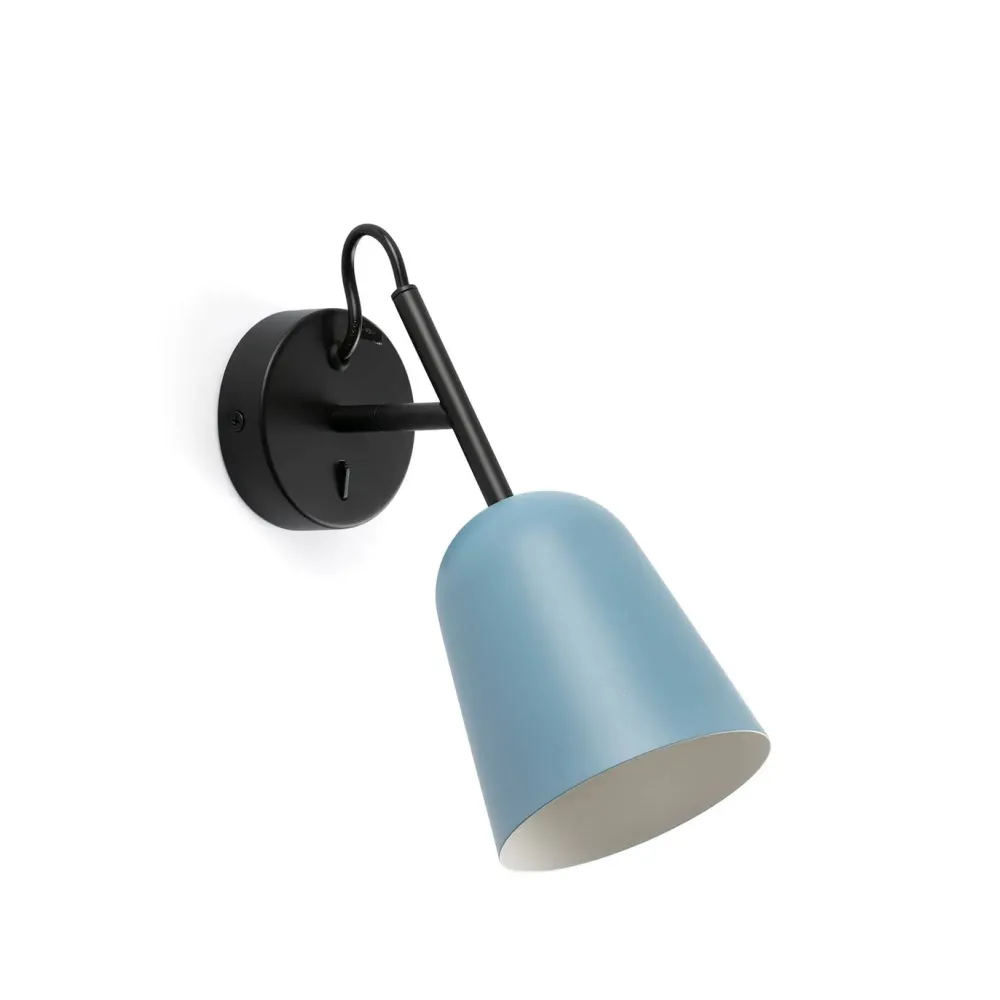 Applique murale STUDIO au design vintage revisité, avec structure noire mate et abat-jour bleu. Idéale pour un éclairage ambiant à la maison ou au bureau.