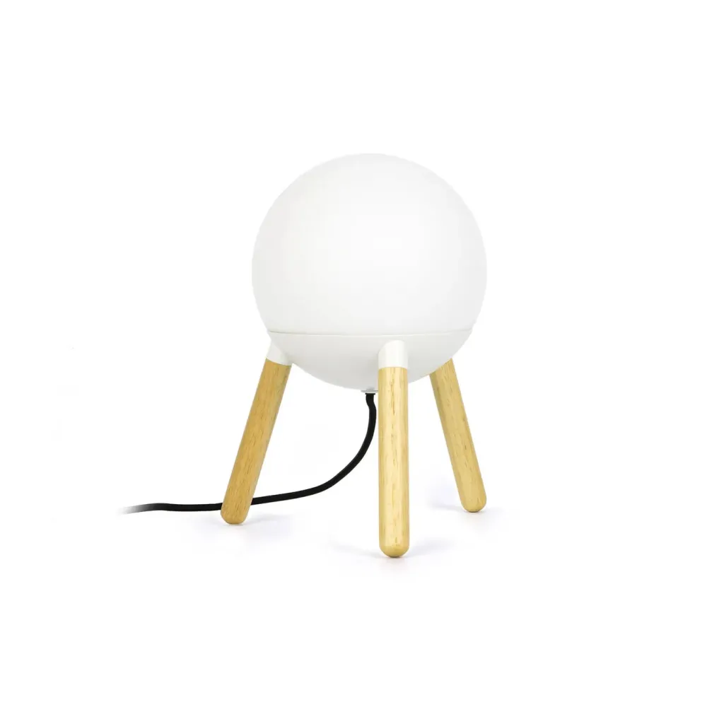 Conçue par Nahtrang, cette lampe de table marie harmonieusement le bois naturel, l’aluminium blanc mat et un diffuseur opal en polycarbonate. Son design chaleureux diffuse une lumière ambiante douce, idéale pour créer une atmosphère cosy dans un salon, une chambre ou un espace de lecture.