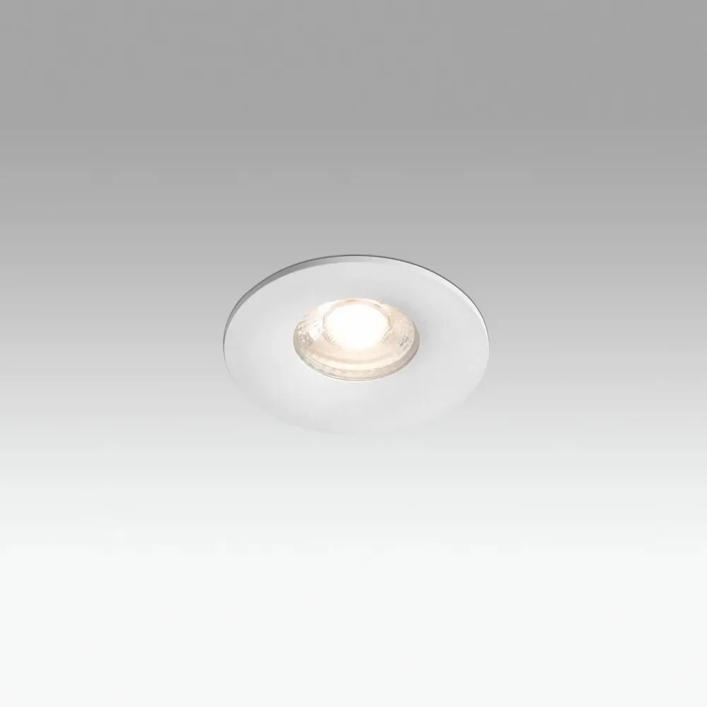 Ce luminaire encastrable rond est conçu pour l’éclairage intérieur, idéal notamment pour les salles de bains grâce à son indice de protection IP44. Sa structure en acier avec finition blanc mat et son diffuseur en verre transparent assurent un rendu discret et moderne qui s’intègre parfaitement dans tous types de plafonds.