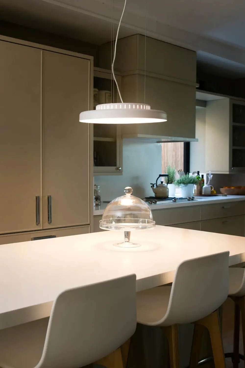 DOLME est une suspension LED au design épuré et contemporain, conçue pour s’intégrer harmonieusement dans tout type d’intérieur. Sa finition blanche mate et sa forme plate confèrent à ce luminaire une allure minimaliste et élégante, idéale pour les espaces modernes.