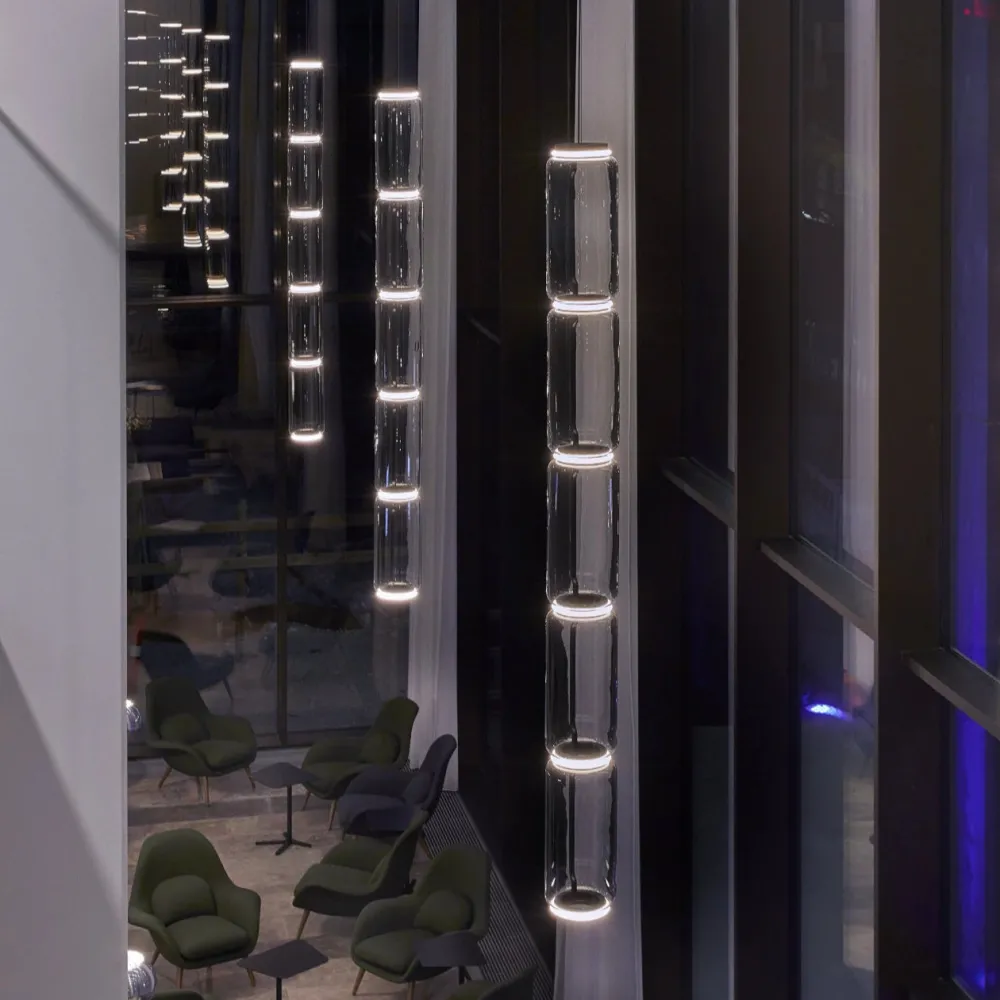 Suspension issue de la collection Noctambule éditée par Flos, ce modèle est composé de 5 cylindres successifs de 45cm de hauteur chacun. Cette gamme permet des compositions de plusieurs éléments en verre connectés entre eux (magnifique dans une cage d’escalier !).