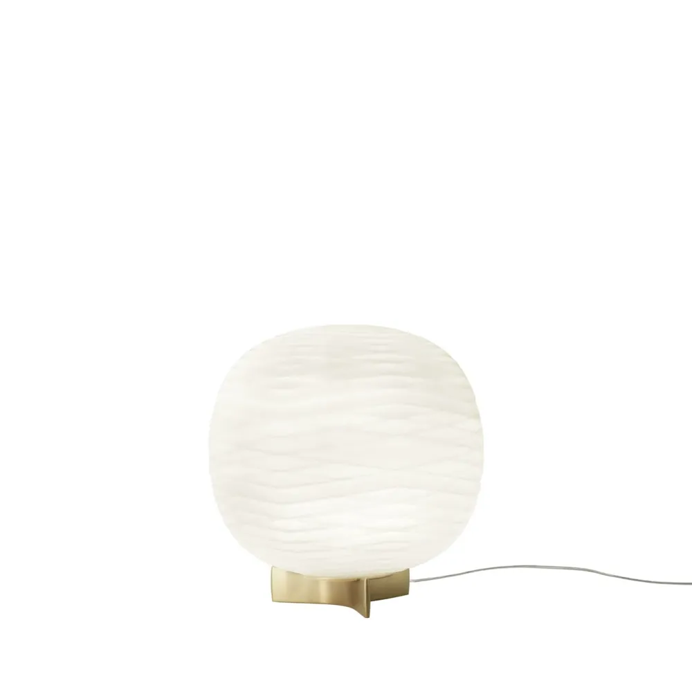 Une vibration fluide sur le verre. La lampe de table Gem est un objet qui séduit d’emblée : dès le premier regard, on est attiré par le caractère précieux du matériau et le savoir-faire de la fabrication artisanale. Magnifique même éteinte, elle possède un socle couleur or satiné qui met en valeur le verre soufflé à la bouche.