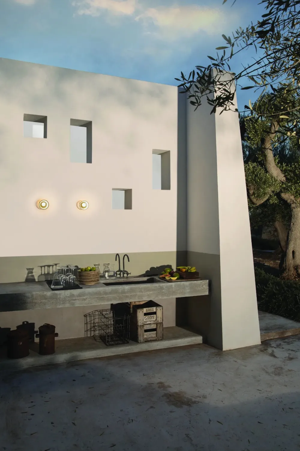 Telle une goutte de rosée pure et claire, Agua rappelle des cercles infinis dans le ciel. Reflétant la lumière de l’aube après une nuit calme. Agua flotte avec une légèreté imperceptible, comme des rêves au matin. Cette applique sera parfaite pour habiller vos extérieurs.