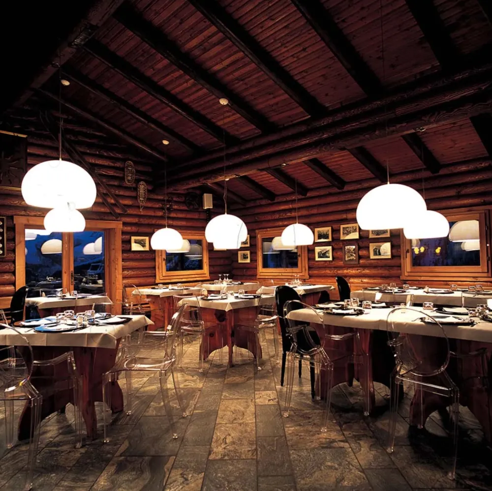 FL/Y est une suspension aux lignes essentielles. La transparence particulière du matériau et la brillance des couleurs donnent l’idée d’une bulle de savon chatoyant aux reflets de la lumière. Par ailleurs, la calotte n’est pas parfaitement hémisphérique, le plan sécant passe au-dessous du diamètre pour recueillir un maximum de lumière. Les modèles blanc et noir sont opaques, et sont donc recommandés pour l’éclairage d’une table uniquement, et non pour un éclairage général.