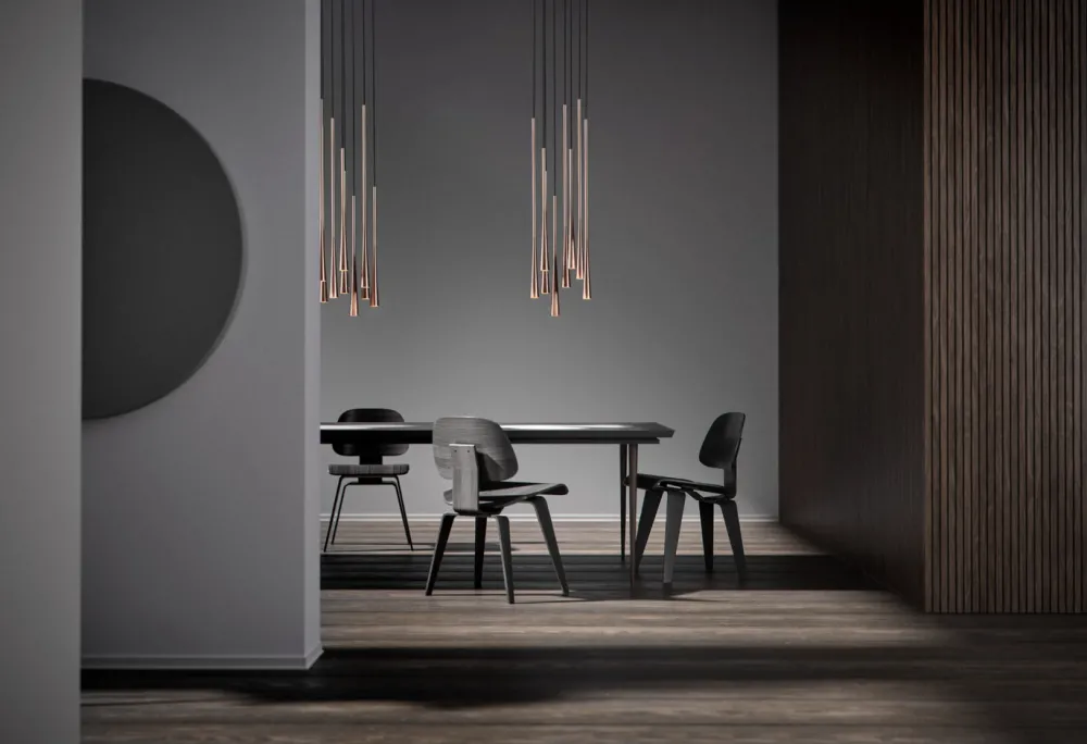 Drop est une série de suspensions proposées en 3 couleurs et 2 tailles (hauteur 60cm ou 90cm). Elle est extrêmement discrète et peut être installée en composition horizontale pour éclairer une table de repas ou un îlot.