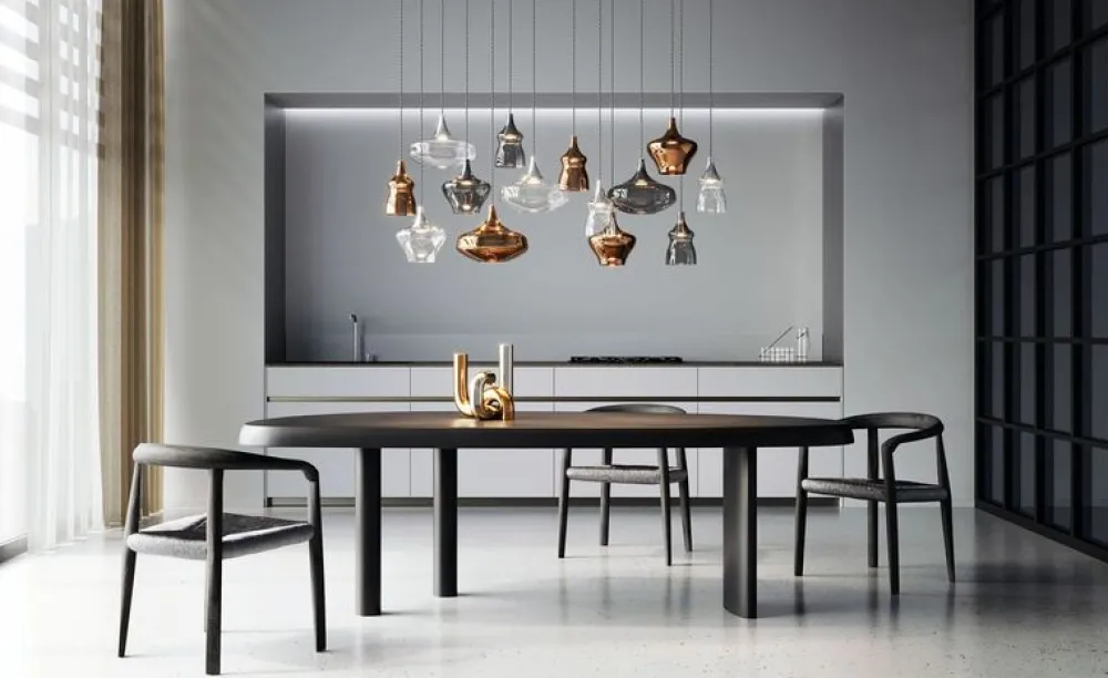 Avec son charme retro, Nostalgia raconte avec élégance d’anciennes histoires de verre soufflé en trois formes sinueuses qui peuvent être combinées à volonté. La perfection du verre, l’innovante technologie LED et ses finitions raffinées font de Nostalgia une lampe très contemporaine et polyvalente qui permet de créer une atmosphère fascinante qu’elle soit éclairée ou éteinte.
