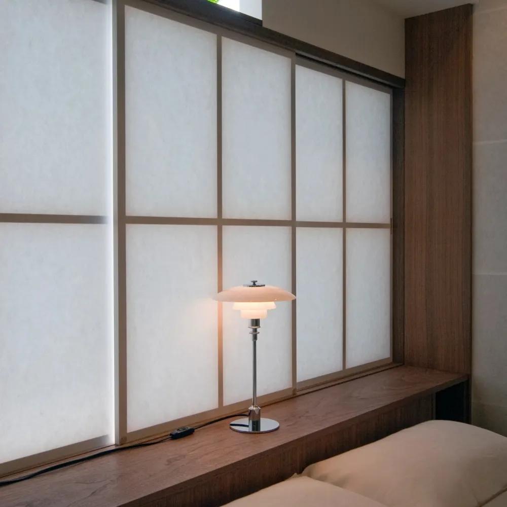 La PH 2/1 est une lampe de table compacte qui perpétue la tradition du design lumineux imaginé par Poul Henningsen en 1925. Son système à trois abat-jour en verre soufflé blanc opalisé diffuse une lumière douce et homogène, principalement orientée vers le bas, tout en éliminant l’éblouissement et en créant des ombres subtiles. Inspirée de la fameuse « lampe de Paris », la PH 2/1 utilise une ampoule G9 moderne, assurant une compatibilité avec les éclairages actuels tout en conservant l’esthétique d’origine. Son abat-jour supérieur de 20 cm, associé aux éléments inférieurs du modèle 1/1, respecte la logique de proportions harmonieuses chère à Henningsen. Élégante, discrète et intemporelle, cette lampe s’adapte parfaitement aux tables de chevet, petits bureaux ou étagères, pour une touche de design danois raffinée dans les espaces les plus restreints.