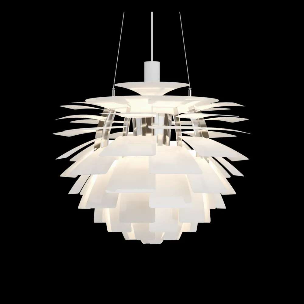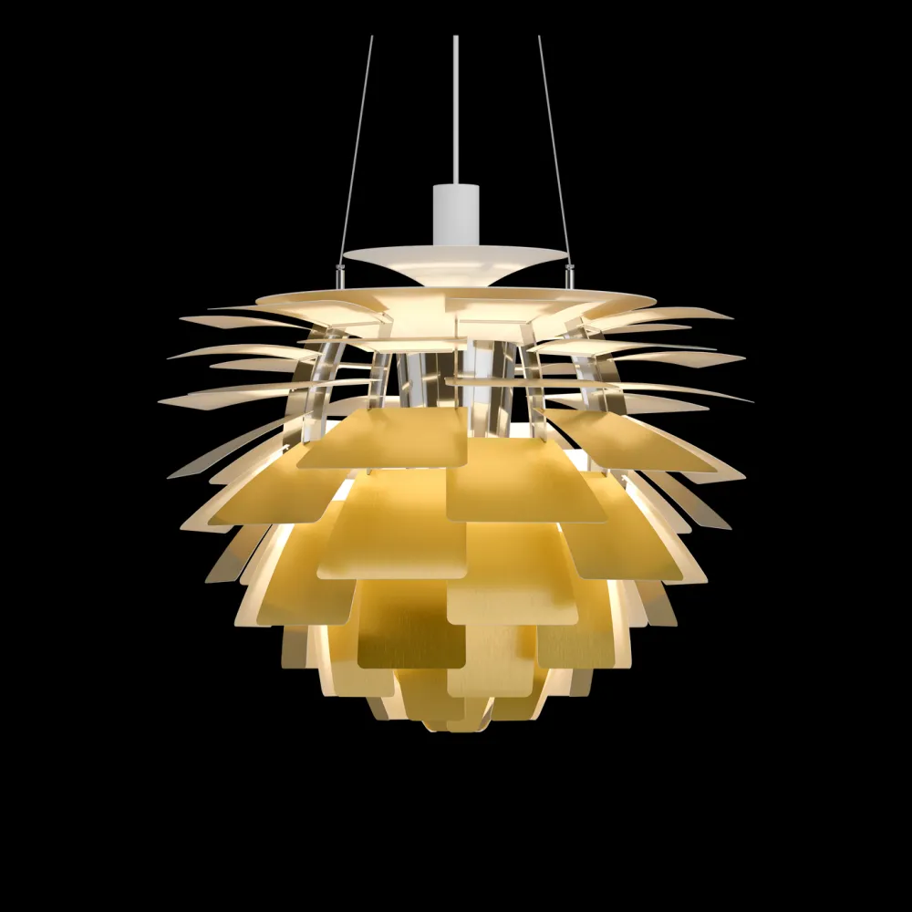 La mythique suspension PH Artichoke est depuis devenue une véritable icône. Ce chef-d’œuvre intemporel est l’une des créations emblématiques du grand designer danois Poul Henningsen : il est l’aboutissement d’une véritable étude de la diffusion de la lumière. Chaque nouvelle finition exprime son design sculptural de nouvelles façons. La forme et la conception caractéristiques de la suspension assurent un éclairage totalement anti-éblouissant, quel que soit l’angle de vue, ceci grâce aux 72 lamelles soigneusement réparties en 12 rangées de 6 lamelles, à la position soigneusement étudiée, qui ont également inspiré le nom de la suspension.