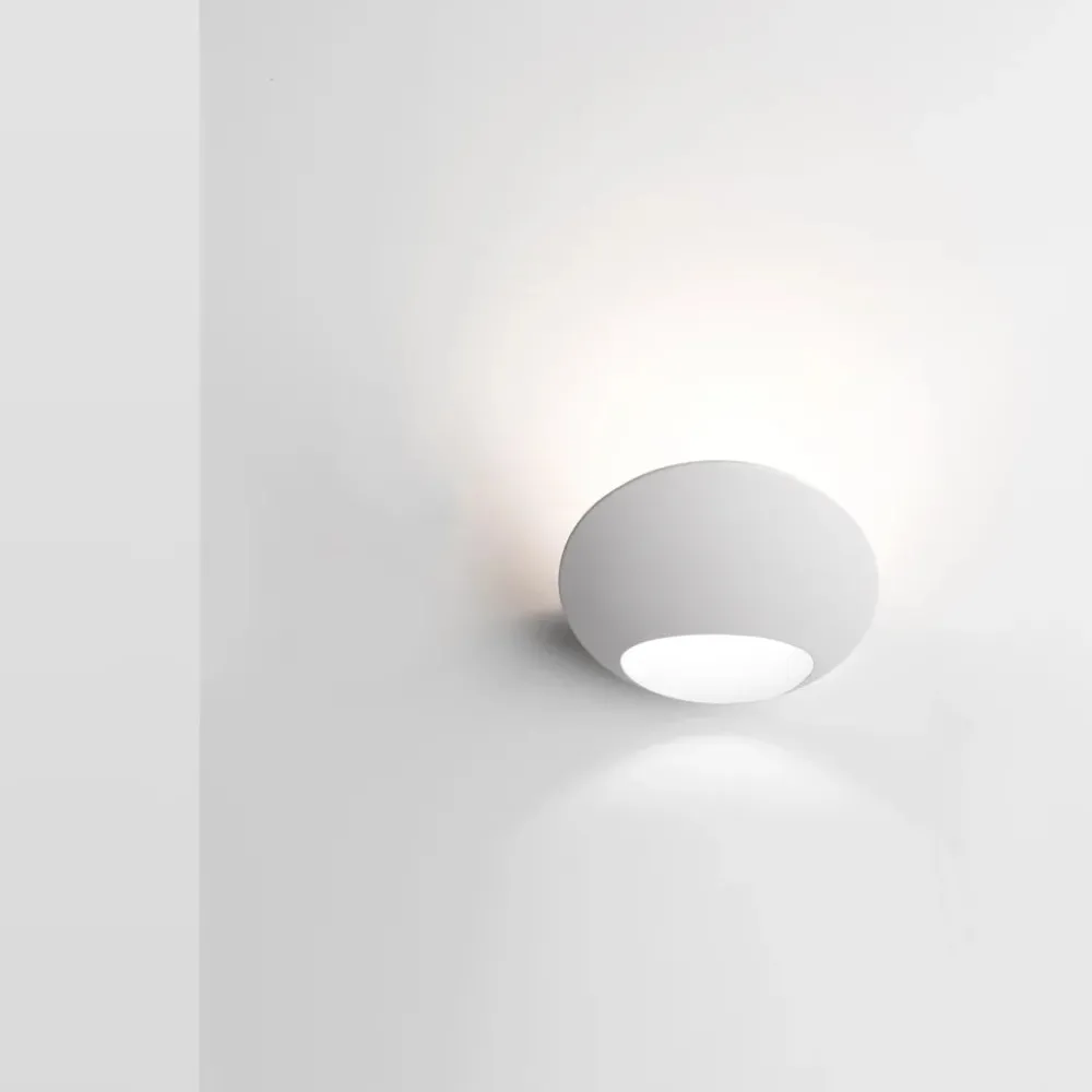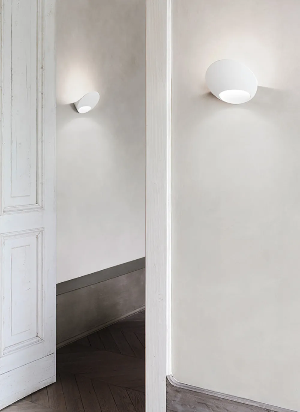 L’applique murale Garbí LED est une création par le designer David Dolcini pour le fabricant Luceplan et plait pour son allure futuriste. A l’intérieur de la lampe en aluminium coulé se trouve un module LED invisible et puissant dont l’intensité peut être variée à volonté et qui produit une lumière particulièrement chaude et non-éblouissante. La structure ovale régulière de l’applique murale Garbí LED par Luceplan comporte une ouverture vers le bas par où s’échappe une partie de la lumière qui forme une courbe douce contre le mur. L’autre partie de la lumière est diffusée indirectement dans la pièce après avoir été réfléchie par le mur. Elle apporte un effet graphique, impressionnant et un discret éclairage non-éblouissant. L’applique murale fonctionnelle à la forme séduisante plait pour l’efficacité de ses LED fixes dont l’intensité peut être réglée par gradateur à coupure de phase en aval.