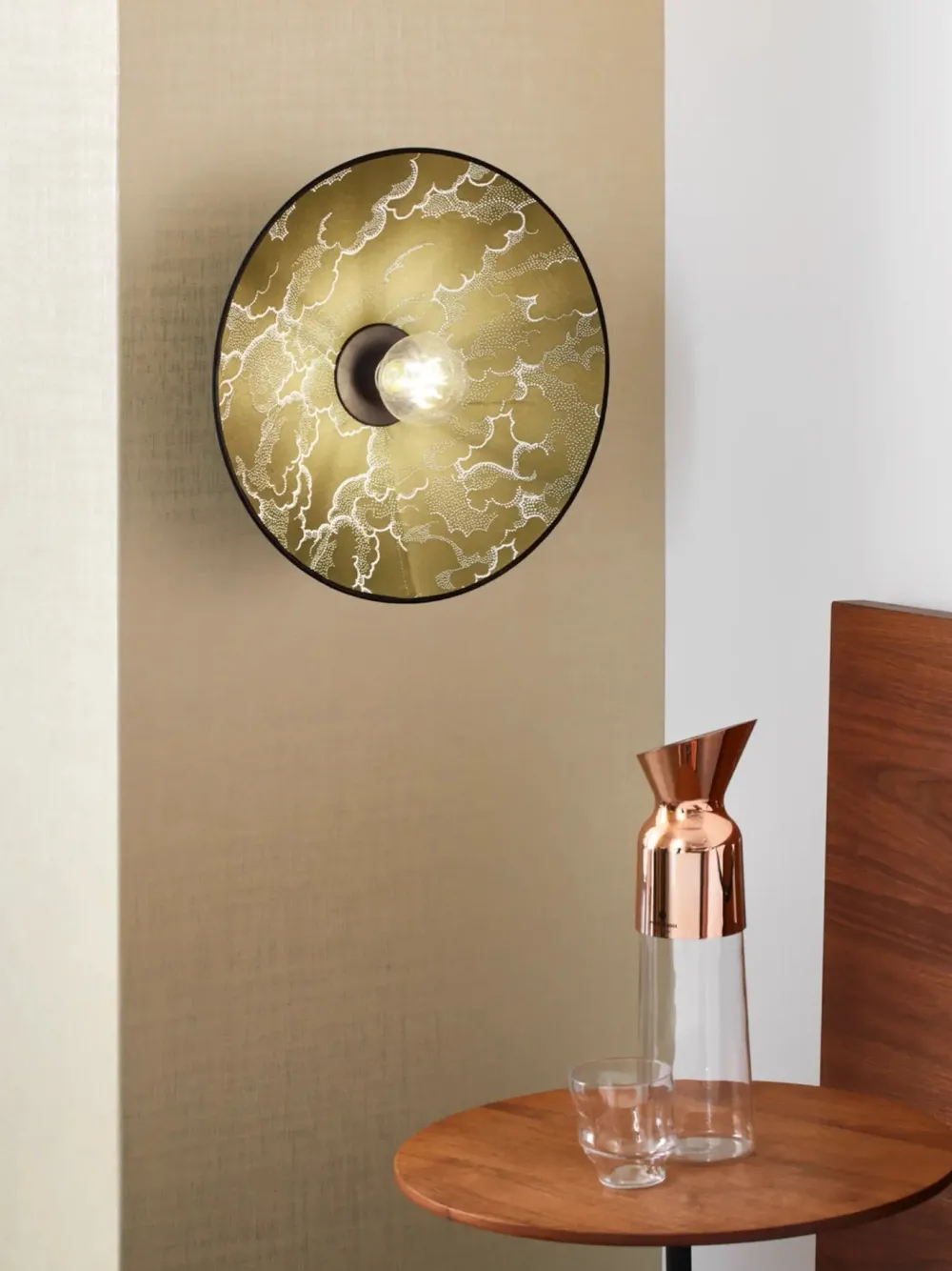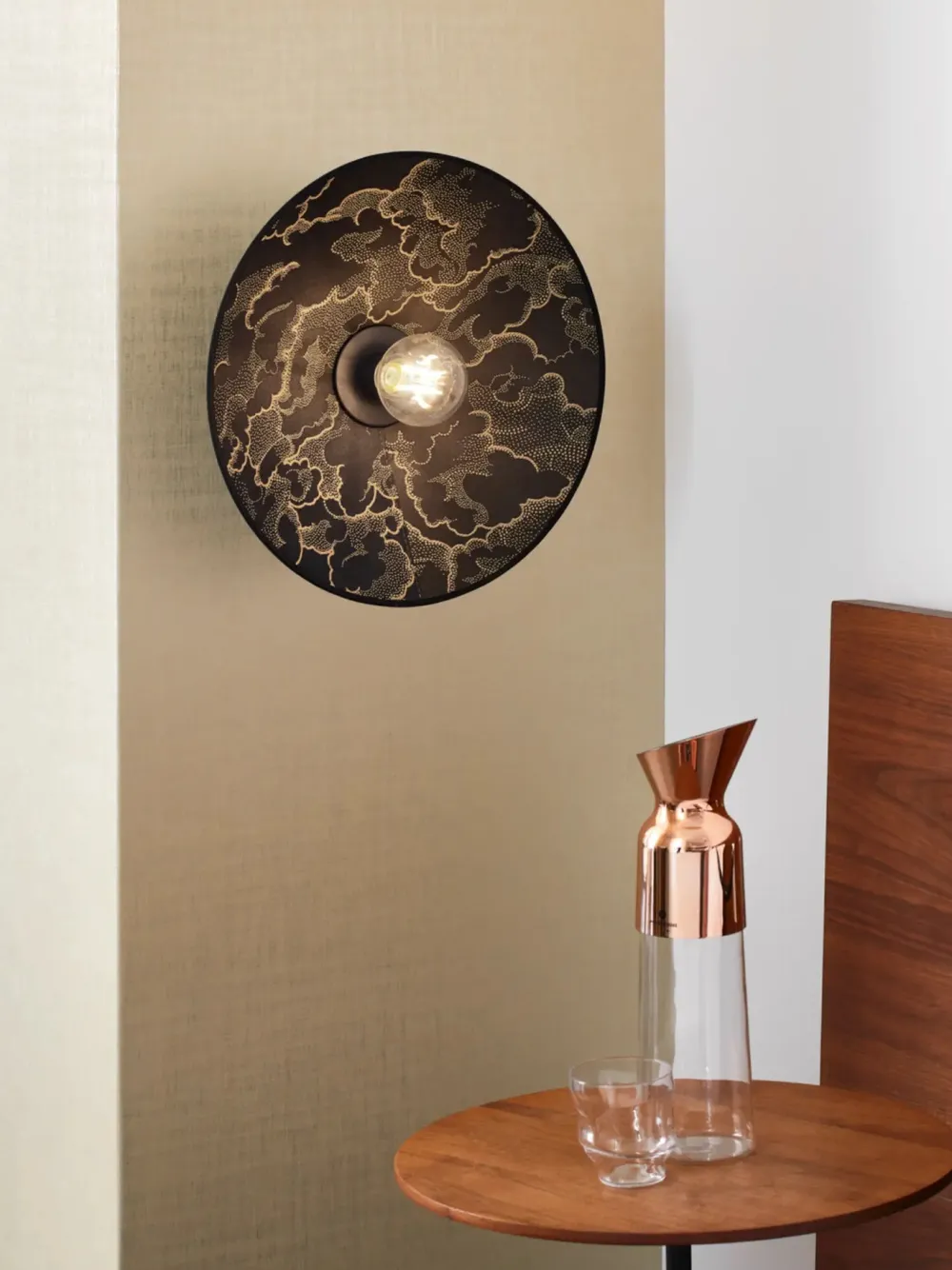Cette nouvelle version puise son inspiration dans l’esthétique japonaise avec un tissu jacquard satiné aux motifs graphiques rappelant les paysages des estampes traditionnelles. Le dessin des nuages, « Kumo » en japonais, se déploie tel une fresque aux lignes calligraphiques, offrant un rendu sculptural et affirmé. Disponible en noir et en kaki, des teintes profondes et masculines, cette applique s’intègre parfaitement dans un intérieur chic et contemporain.
