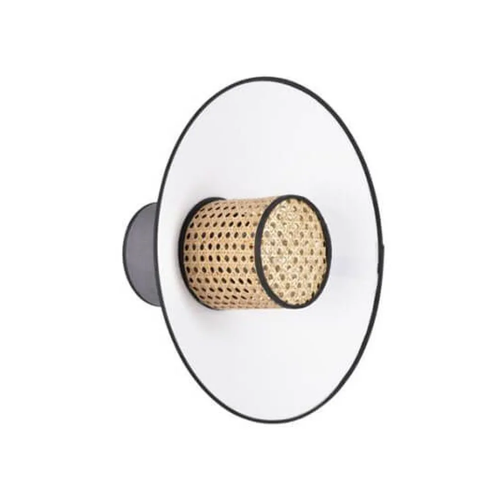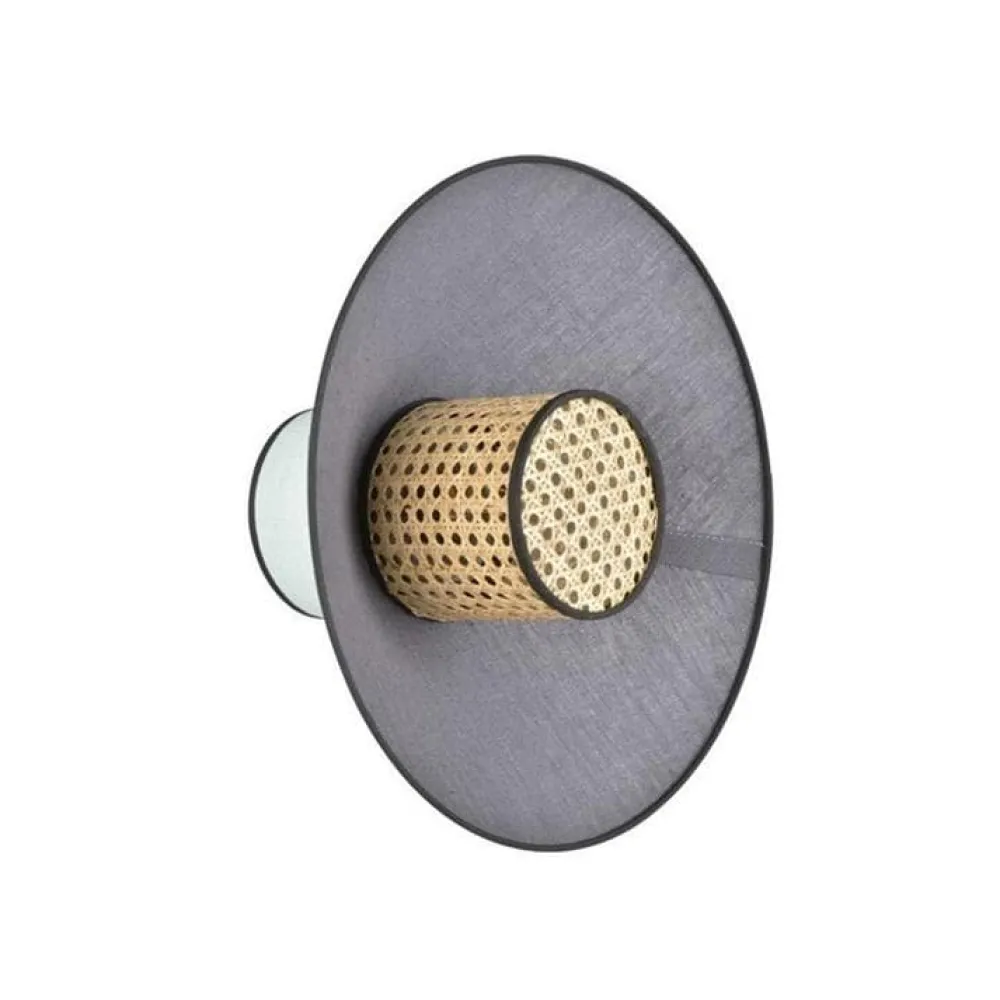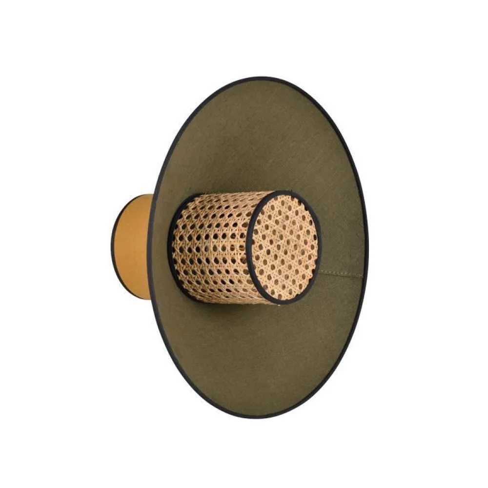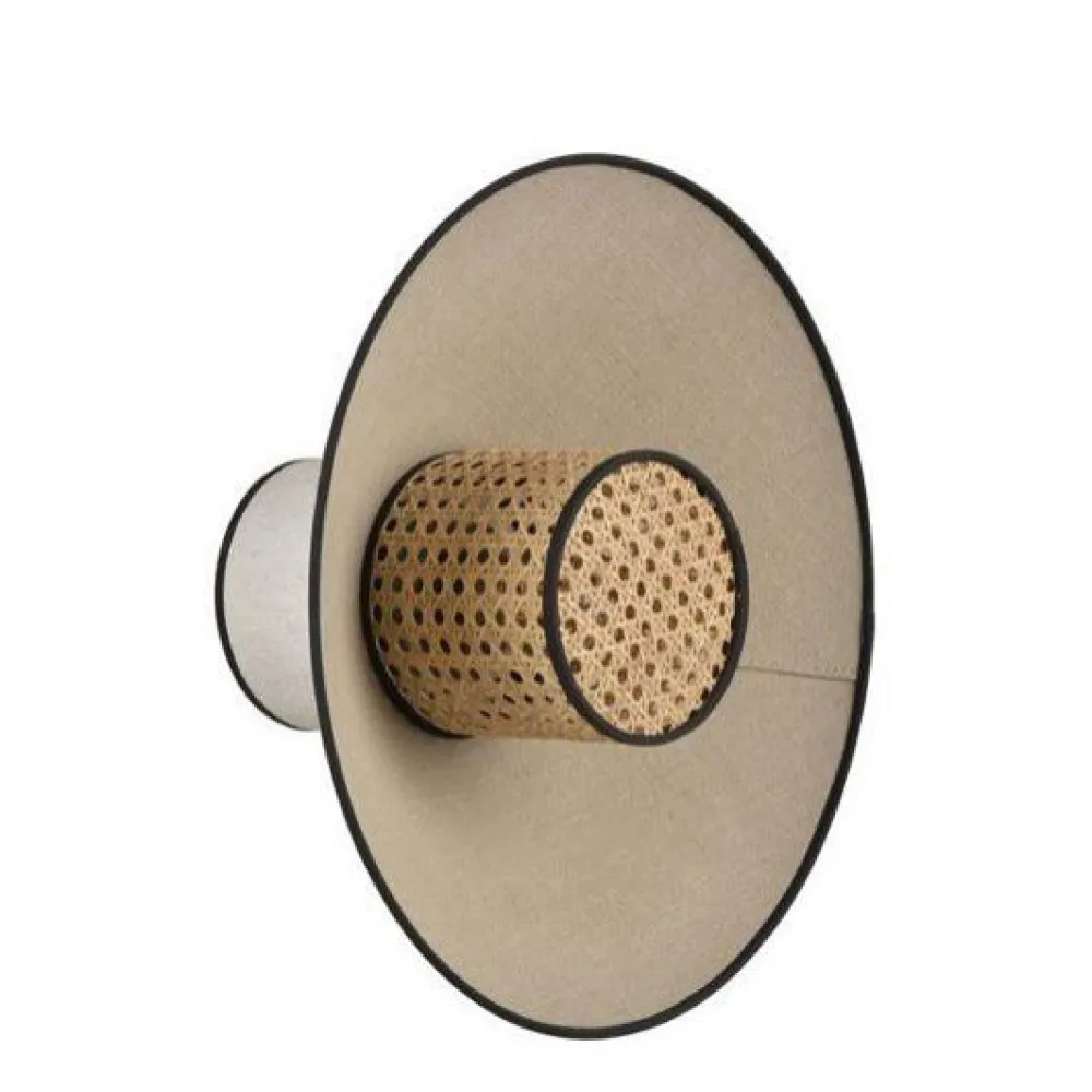 Applique murale de la collection Singapour éditée par la maison française Market Set. Elle est composée d’une fixation murale invisible et d’un un abat-jour constitué d’un cylindre et d’un cône habillé de lin et d’un diffuseur cylindrique en cannage naturel.Graphique, exotique et raffinée, la collection Singapour se décline en différents modèles complémentaires proposés en plusieurs finitions.