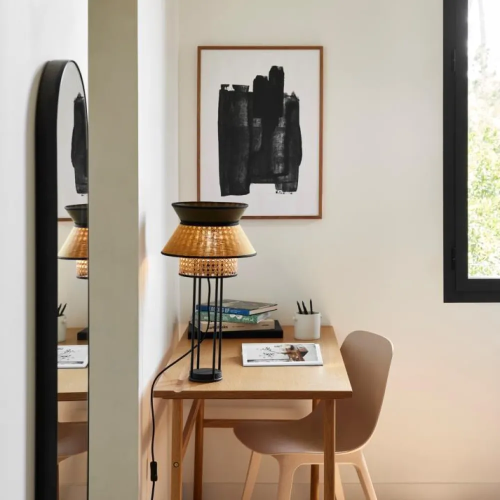 Lampe à poser de la collection Singapour éditée par la maison française Market Set. Fabriquée en lin lavé et en cannage. Ce luminaire est équipé d’un cover amovible sur le haut de l’abat-jour, d’un cordon textile et d’un interrupteur. Dans un séjour ou une chambre, ces matériaux permettent un jeu de contraste captivant et vous plonge dans une atmosphère chaleureuse. Disponible en plusieurs coloris.