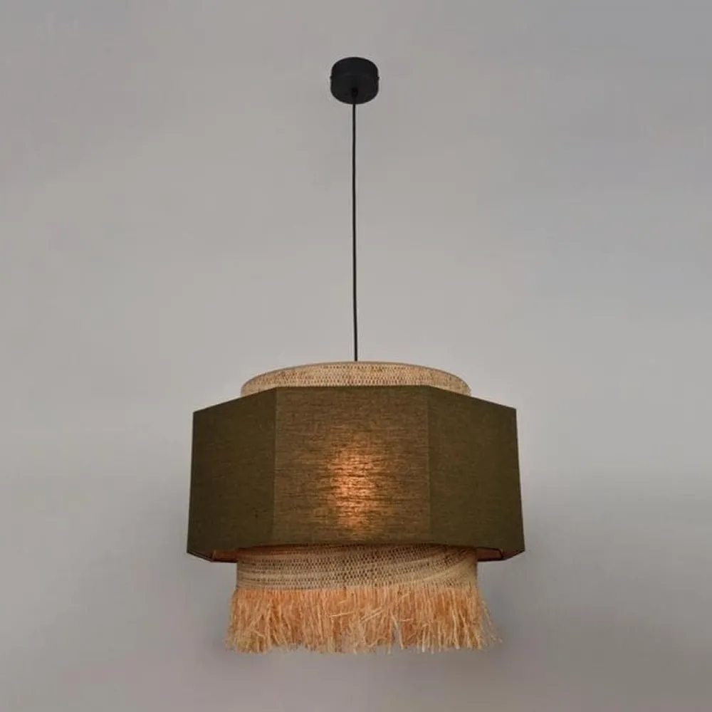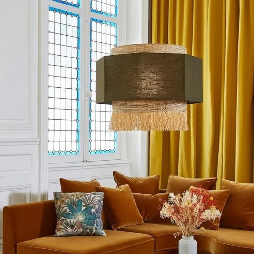 Un véritable hommage au savoir-faire artisanal des vanniers marocains qui mixent les matières naturelles pour offrir une gamme de luminaires ethniques et modernes à la fois ! Composée d’un empilement de 3 abat-jours de forme octogonale en lin lavé et cylindre en bana et raphia, frangé à la main. La collection Marrakech nous fait voyager au Maroc…