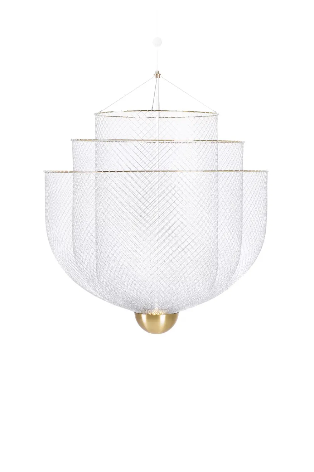 Quiconque pose les yeux sur le lustre Meshmatics ne devinera jamais ce qui se cache derrière son apparence sophistiquée. Rick Tegelaar a rehaussé la nature de l’humble grillage en développant une machine et un ensemble d’outils pour le modéliser avec précision. Le potentiel de ce matériau mince et flexible est ensuite étiré et capturé dans trois couches de beauté.