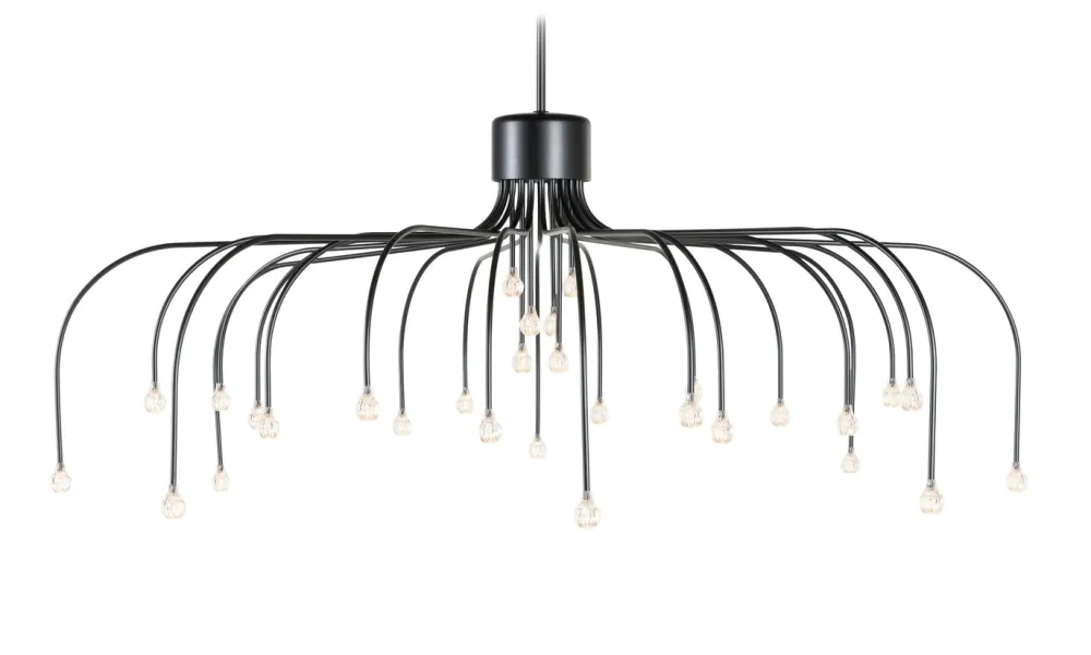 Ponctué de 30 sources lumineuses LED, ce lustre à l’envers apporte une chute d’étoiles perpétuelle dans votre intérieur. Grâce à 30 bras minces de différentes longueurs, il ressemble non seulement à des étoiles filantes, mais aussi à un ciel nocturne étoilé avec des points de lumière à différentes hauteurs. Une toute nouvelle constellation à découvrir ! L’installation est un jeu d’enfant, grâce aux bras déjà en place, vous pouvez donc profiter de vos étoiles filantes en quelques instants.