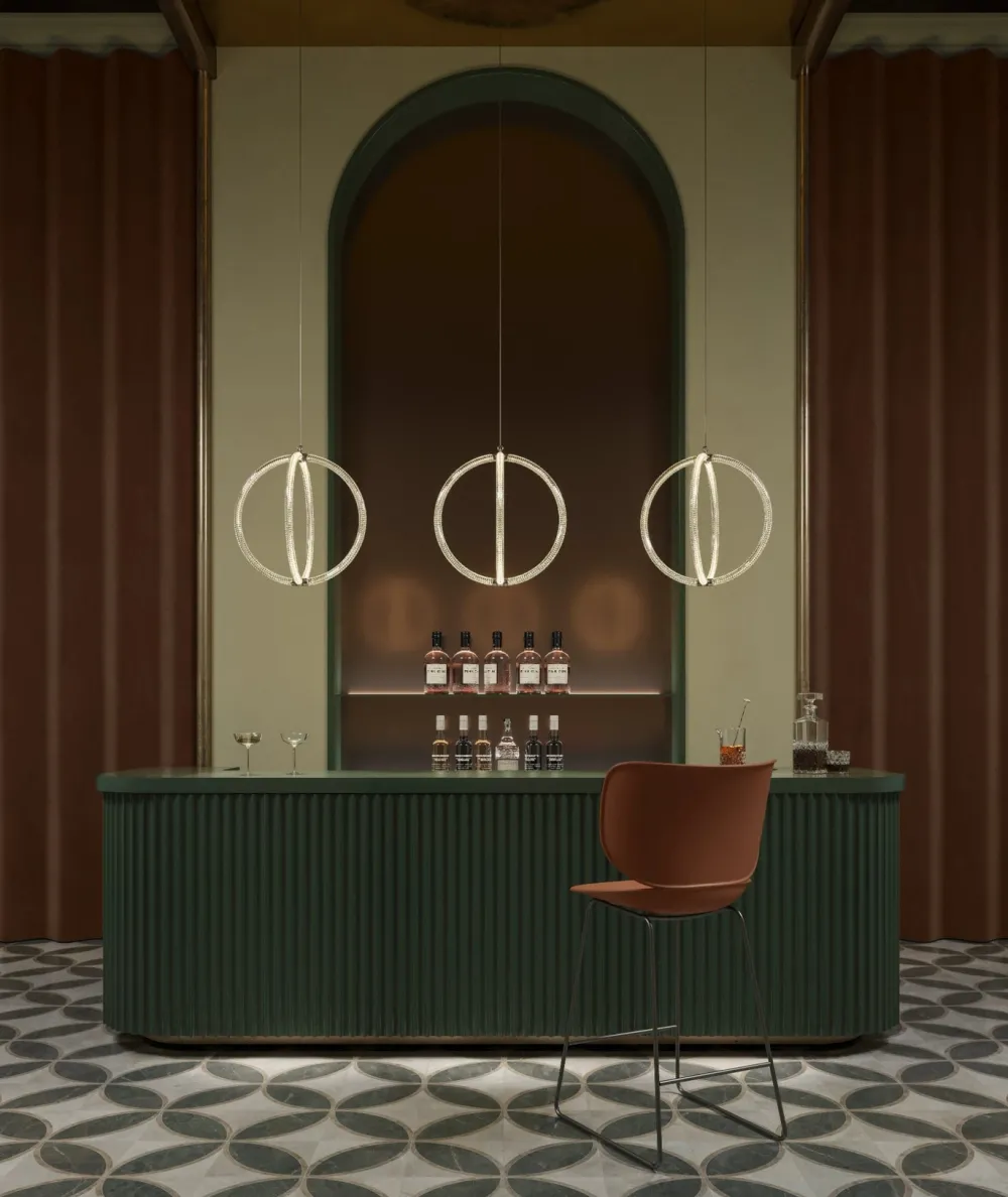 Luminora Light allie sculpture et modernité. Inspirée par le verre de Murano et le très célèbre nombre d’or, cette suspension incarne simplicité des formes et complexité des détails. Son design transforme la lumière en une sculpture lumineuse captivante. Polyvalente et intemporelle, elle s’intègre parfaitement dans tous les styles et espaces.