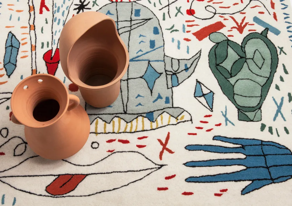 Un premier coup d’œil révèle un enchevêtrement chaotique de couleurs et de formes qui envahissent le tapis. Cependant, après avoir regardé attentivement, l’imagination de Jaime Hayon prend vie : tortues, lèvres, mains, tabourets, poissons, hommes – moitié oiseaux… Nanimarquina propose également de réaliser ses tapis sur-mesure. N’hésitez pas à nous consulter: [email protected]