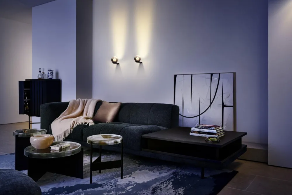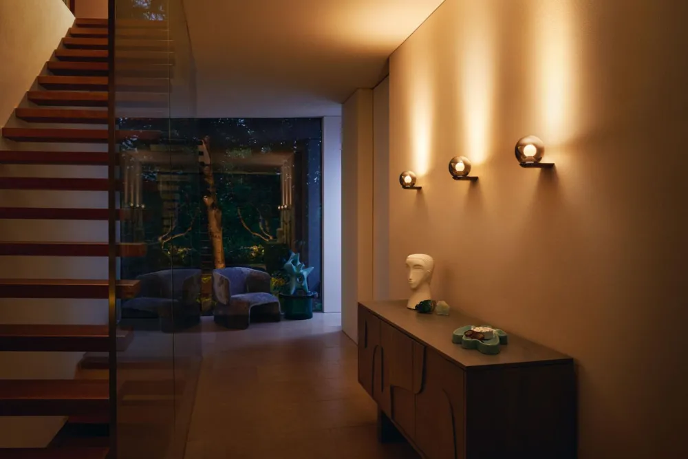 Sa conception captivante et sa lumière douce évoquent une ambiance chaleureuse et envoûtante. Sa splendeur éveille les sens et imprègne les lieux d’une touche magique. La sphère en verre de Luna Parete agit comme un miroir de fond, réfléchissant la lumière de la Occhio firefall vers le haut, illuminant ainsi le mur et le plafond. La surface et le boîtier de cette sphère en verre bénéficient d’un traitement sophistiqué PVD, conférant à la boule de feu Occhio l’apparence d’une lune ascendante. Cette lueur douce et harmonieuse éclaire délicatement l’environnement. La fusion de la lumière, du design et de la technologie crée une expérience inégalée. Avec les caractéristiques uniques de Luna, il vous est aisé et intuitif de contrôler la lumière, devenant ainsi l’architecte lumineux de vos espaces de vie.