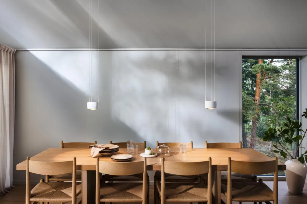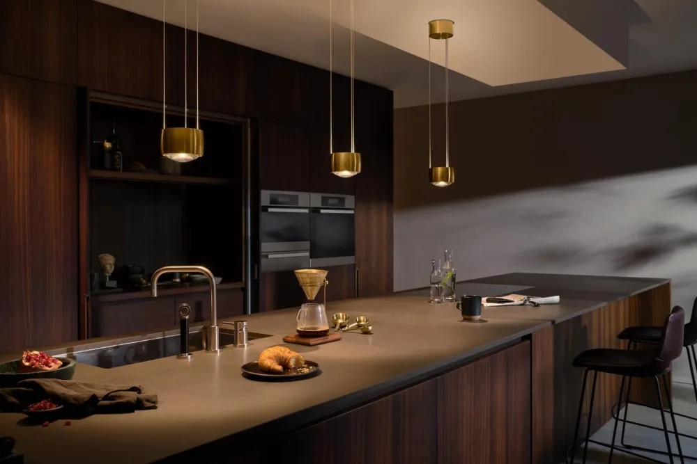 Sento sospeso est une gamme de suspensions modulables : une fois installée, la hauteur peut être variée de 50 à 200cm. Elle éclaire de façon diffuse vers le plafond et de façon plus ponctuelle vers le bas. Ces deux éclairages peuvent fonctionner individuellement. Enfin, une simple position statique de la main sous ou sur la suspension fera varier l’intensité. Et un movement latéral éteindra ou allumera la partie souhaitée. Magique !