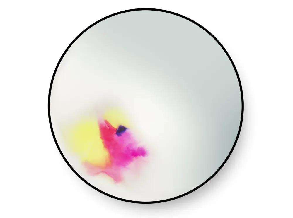 Le petit miroir mural FRANCIS est issu dune expérience sur les pigments. Le glissement des couleurs sur le pourtour évoque l’oxydation des miroirs anciens ou les pigments dune palette de maquillage. Ce dessin empirique, aux couleurs vives et profondes, est restitué sur le fond du miroir avec fidélité. Le dos de ce miroir design, en légère forme de toupie, est suspendu grâce à une cordelette par le centre et penché comme certains miroirs vénitiens.
