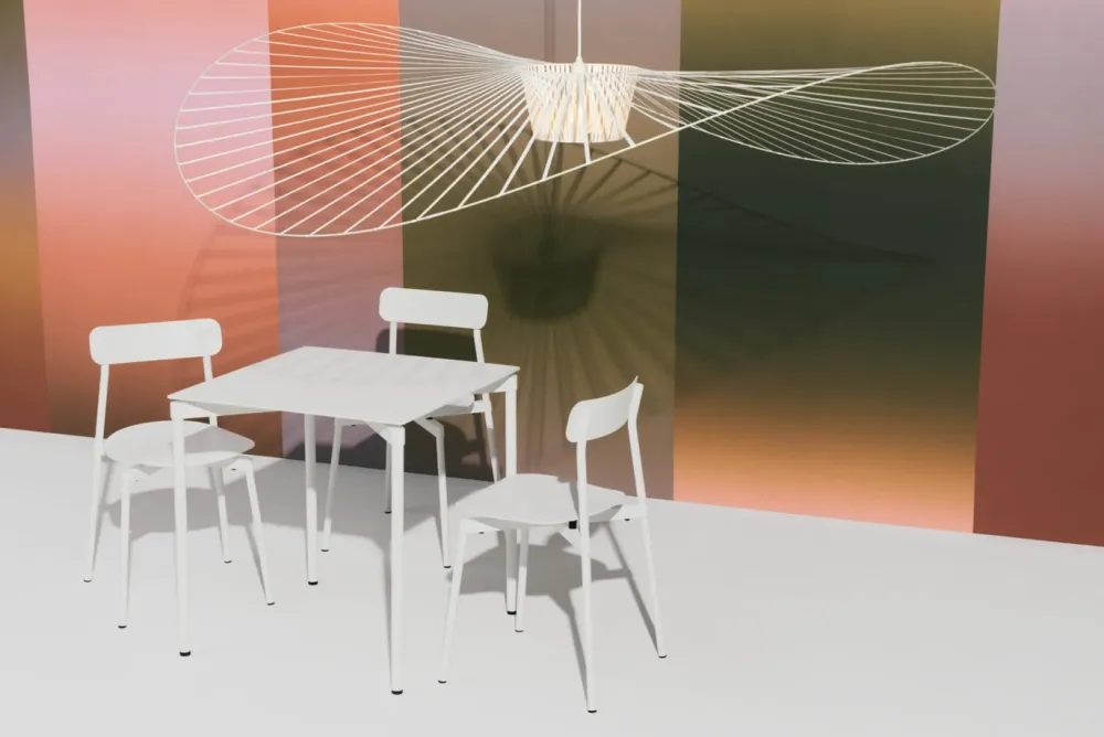Vertigo est une « lampe cabane », selon les termes mêmes de son designer : à la fois aérienne et graphique, elle s’adapte aux grands volumes comme aux petits, où elle recrée un espace propre et intime. Structure ultralégère